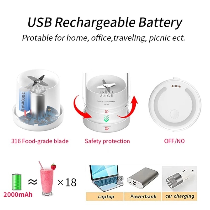 Creass Portable Blender Juicer Bottle Electric USB Charge Mini Fruit Milk Mixers Blender 420ML Juice Maker Machine