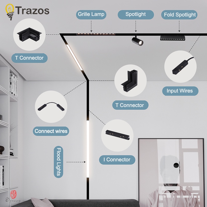 Trazos Led Magnetic Track Light System Accessories Rail Connector Power Transformer Rails For Magnet Lights