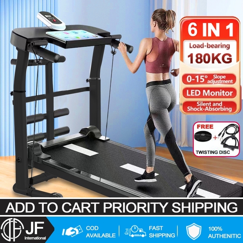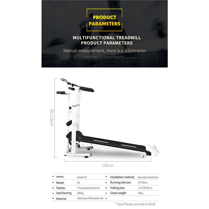 JF Treadmill Multifunctional Manual Treadmill Foldable Walking Machine Adjustable Slope