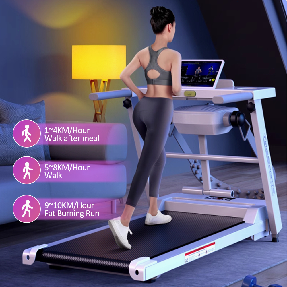 Multifunctional Treadmill Shock-Absorbing with Armrests Silent Digital Display Foldable Walking Pad