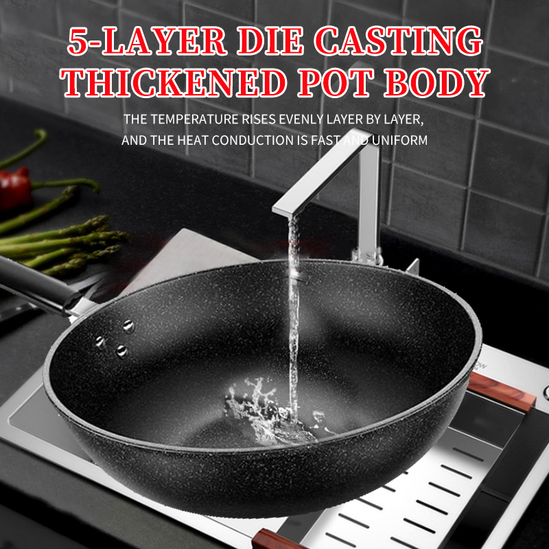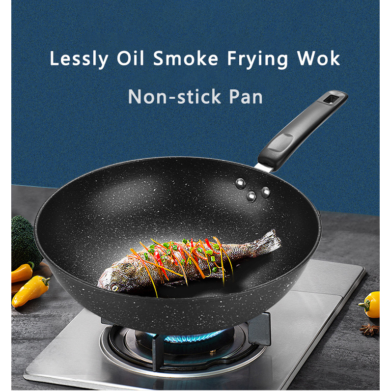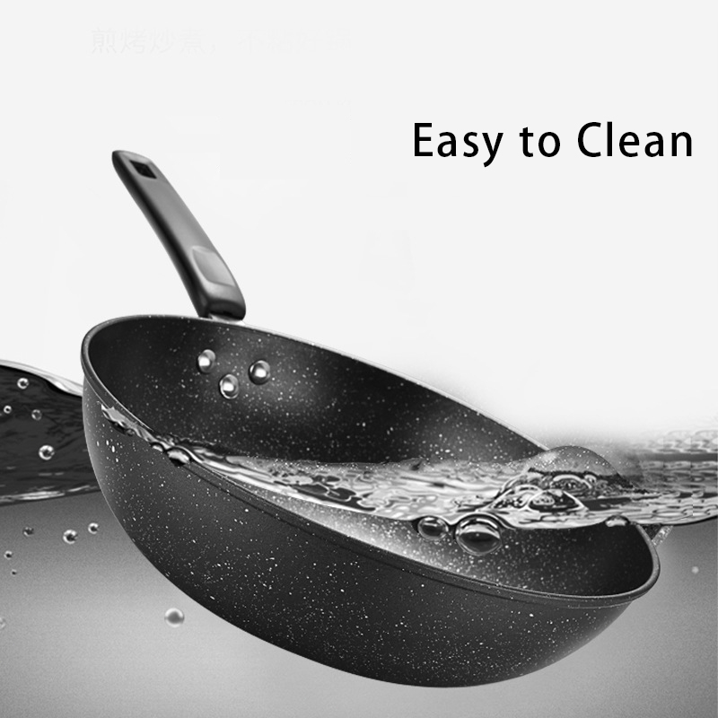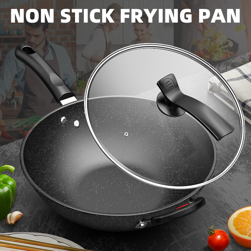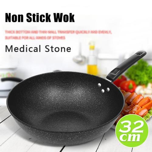 Non Stick Wok 32cm Pan with Lid Medical Stone Wok Healthy Original Non-stick Frying Pan Iron Wok