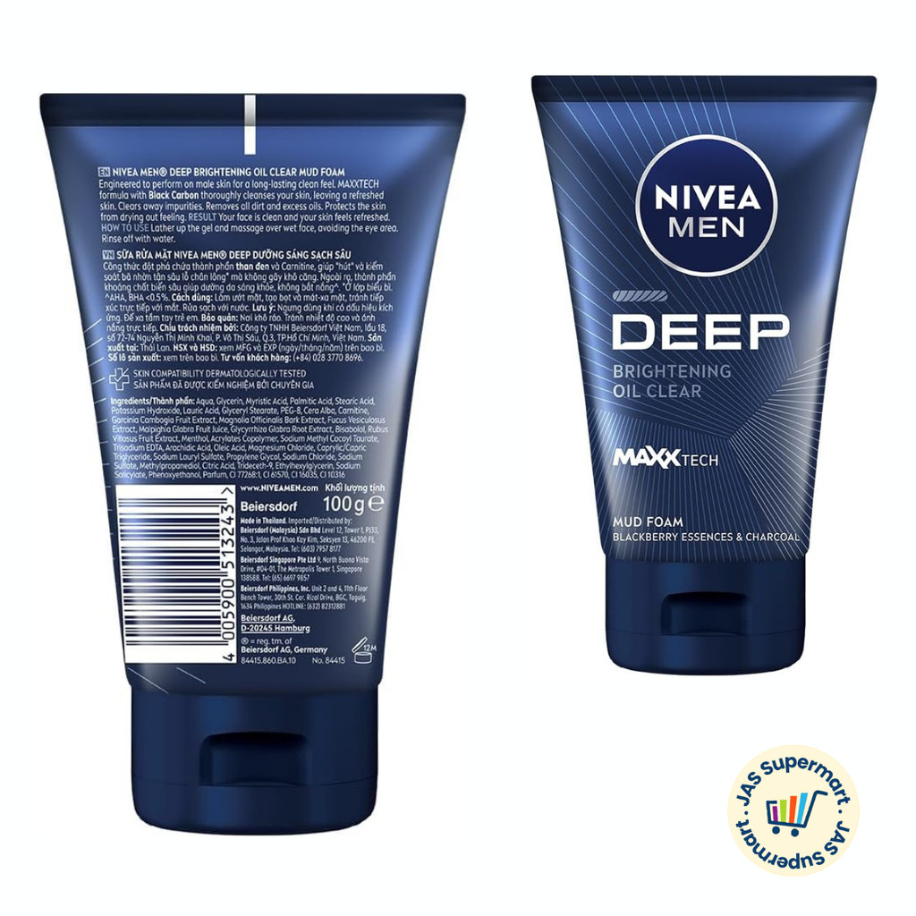 NIVEA MEN Deep Brightening Oil Clear Mud Foam Facial Cleanser 100g – Fresh & Clear Skin