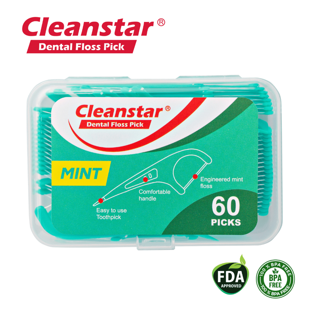CleanStar Dental Floss Pick Mint Box 60pcs