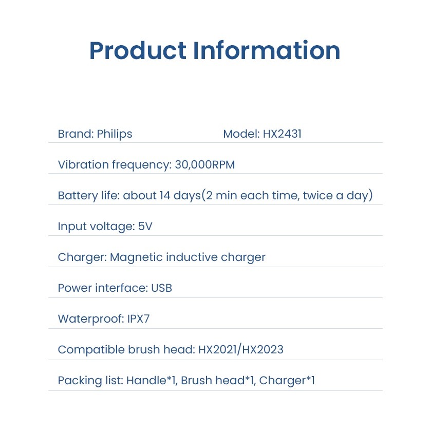 Philips@Un[R,HX2431 Sonicare Electric Toothbrush Vibration 2 Min Timer Dual Mode USB Charge Adult W