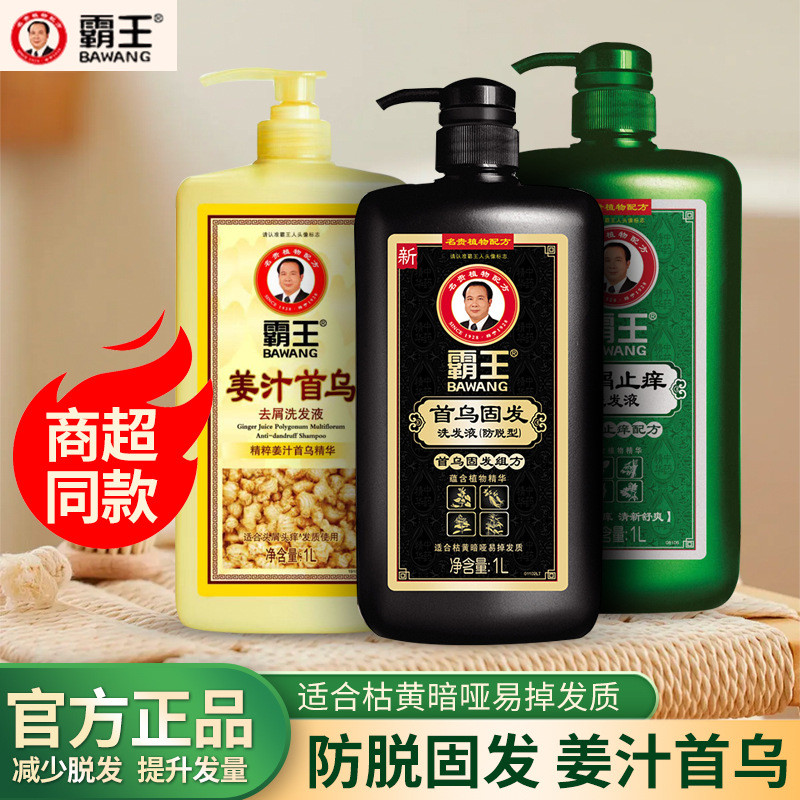 Hot Sale#Bawang Shouwu Hair Strengthening Anti-Hair Loss Shampoo Ginger Anti-Dandruff Anti-Itch Shampoo Genuine Large Bottle Family Pack for Men and Women day