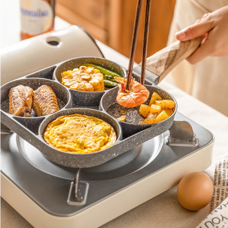 4 Hole Frying pan Cooking Pot Non-Stick Pancake Maker Home Breakfast Egg Burger Pot