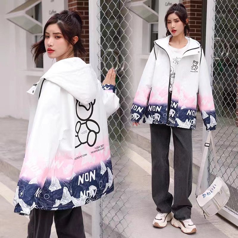 Bear-Zn)Storm*r-Jacket for Girl Korean Trend Cardigan Hoodie<y'Clothing{Z<Windbreaker'a{Jacket'Z'Br