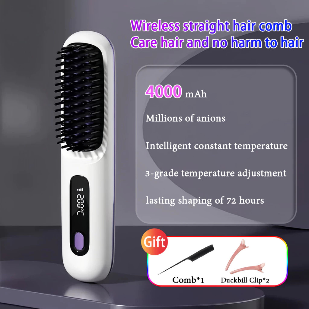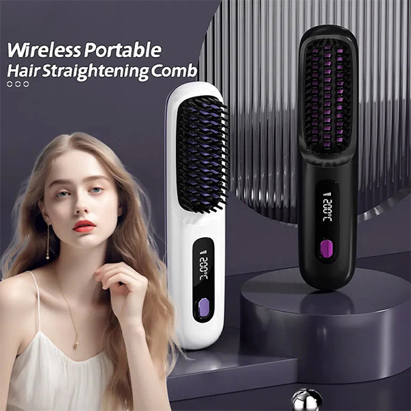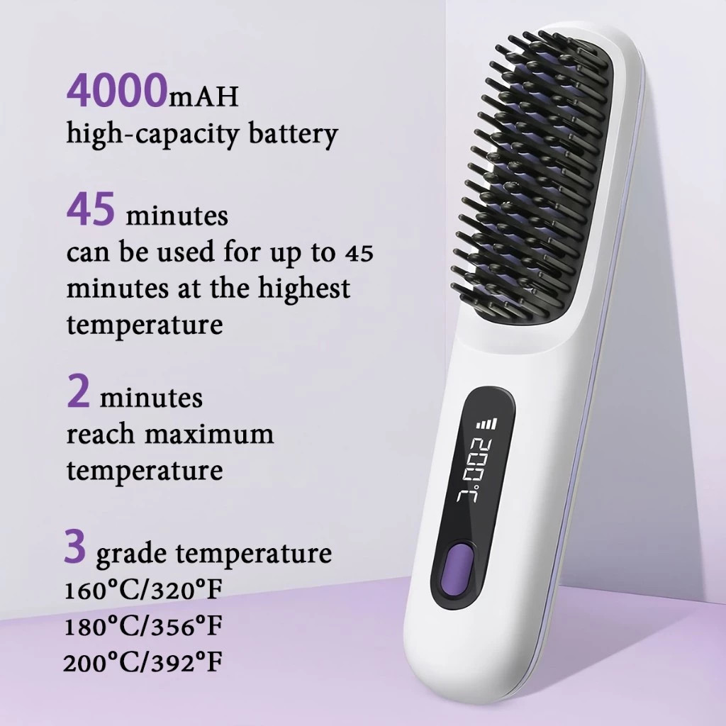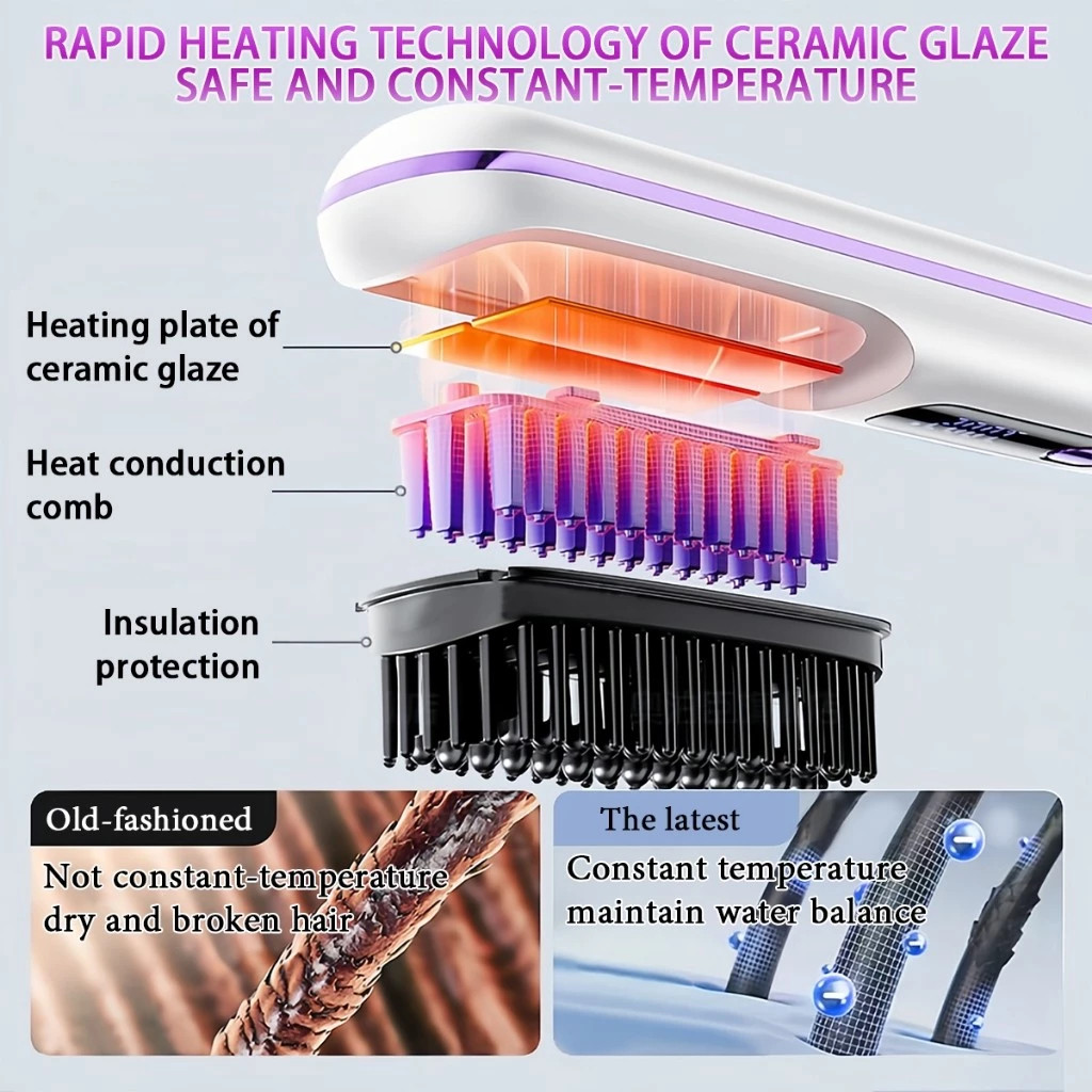 LCD USB Charging Heating Curling Power Comb Hair Straightener Wireless Portable Hair Straightening