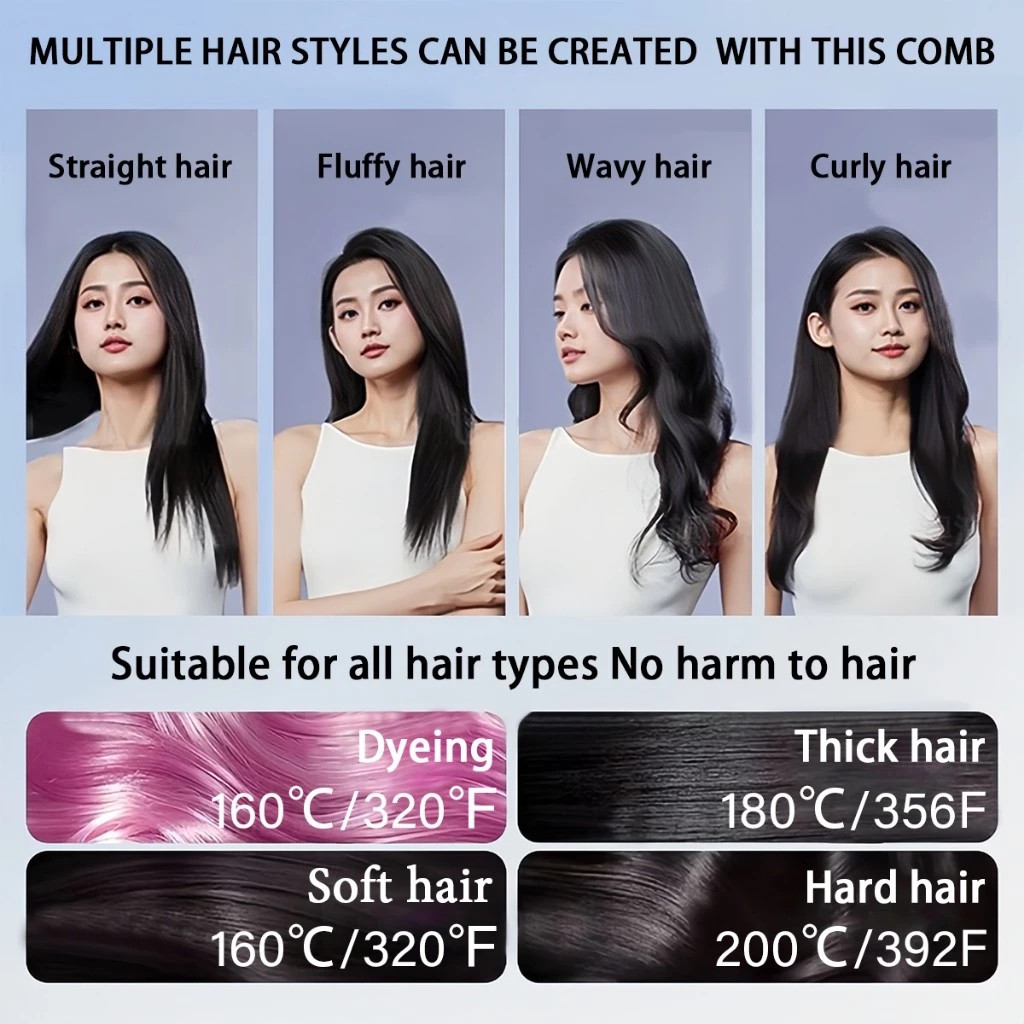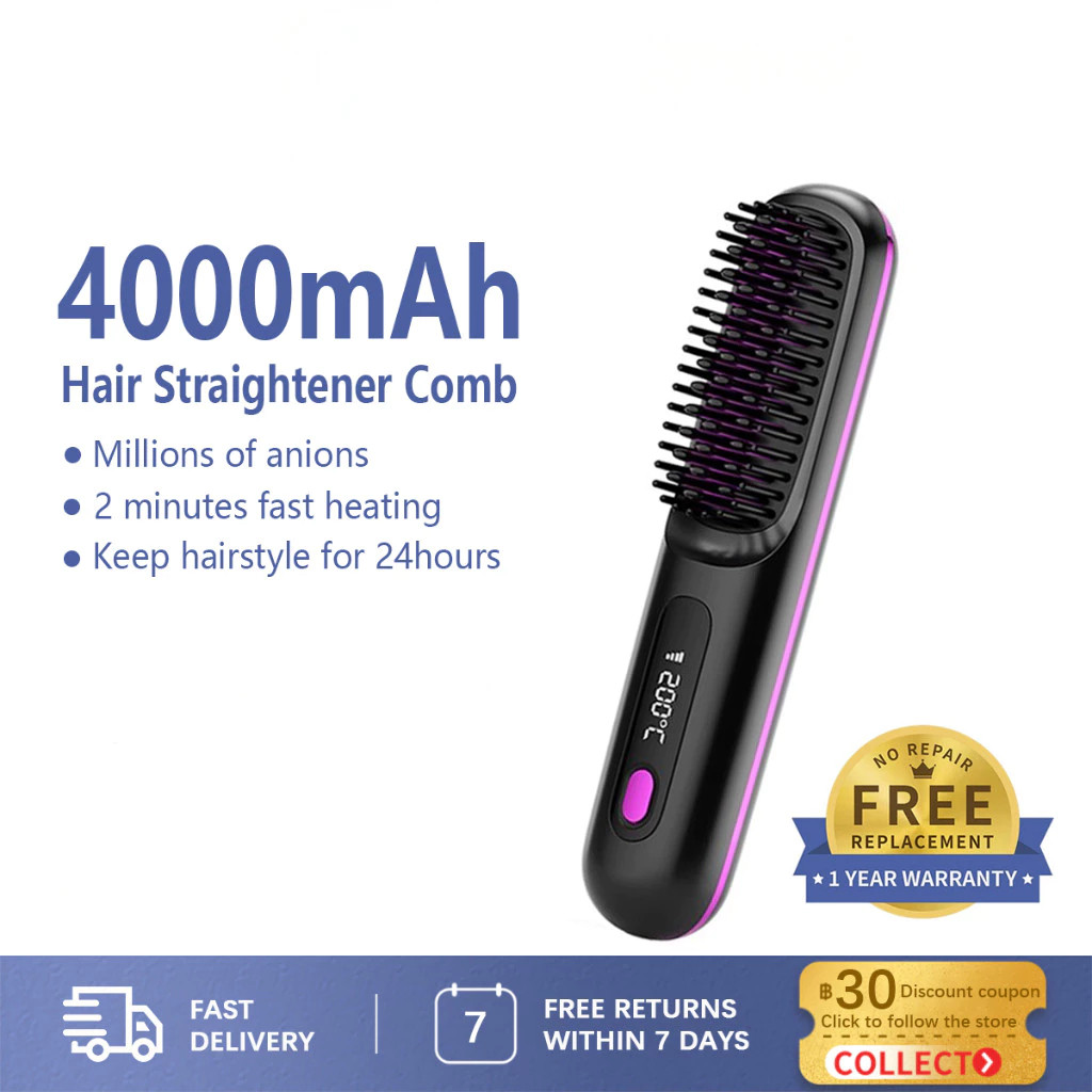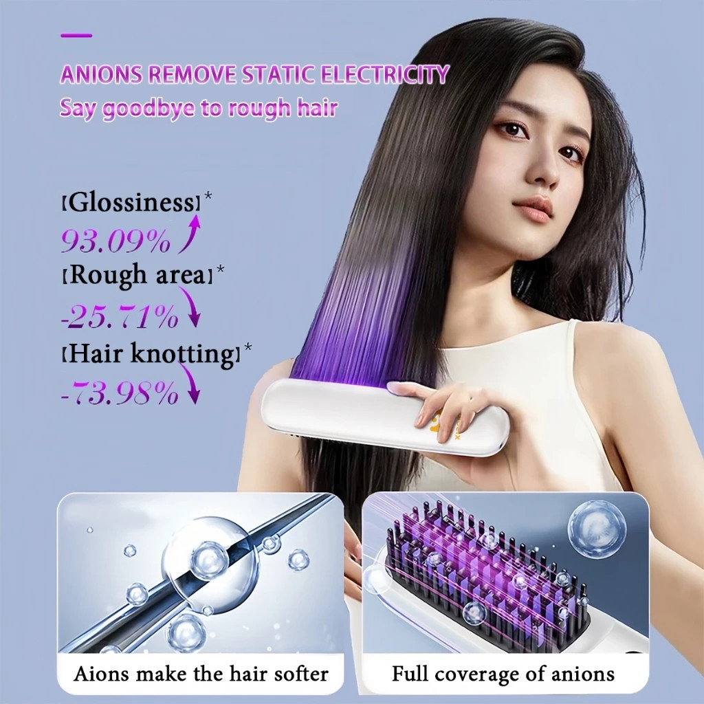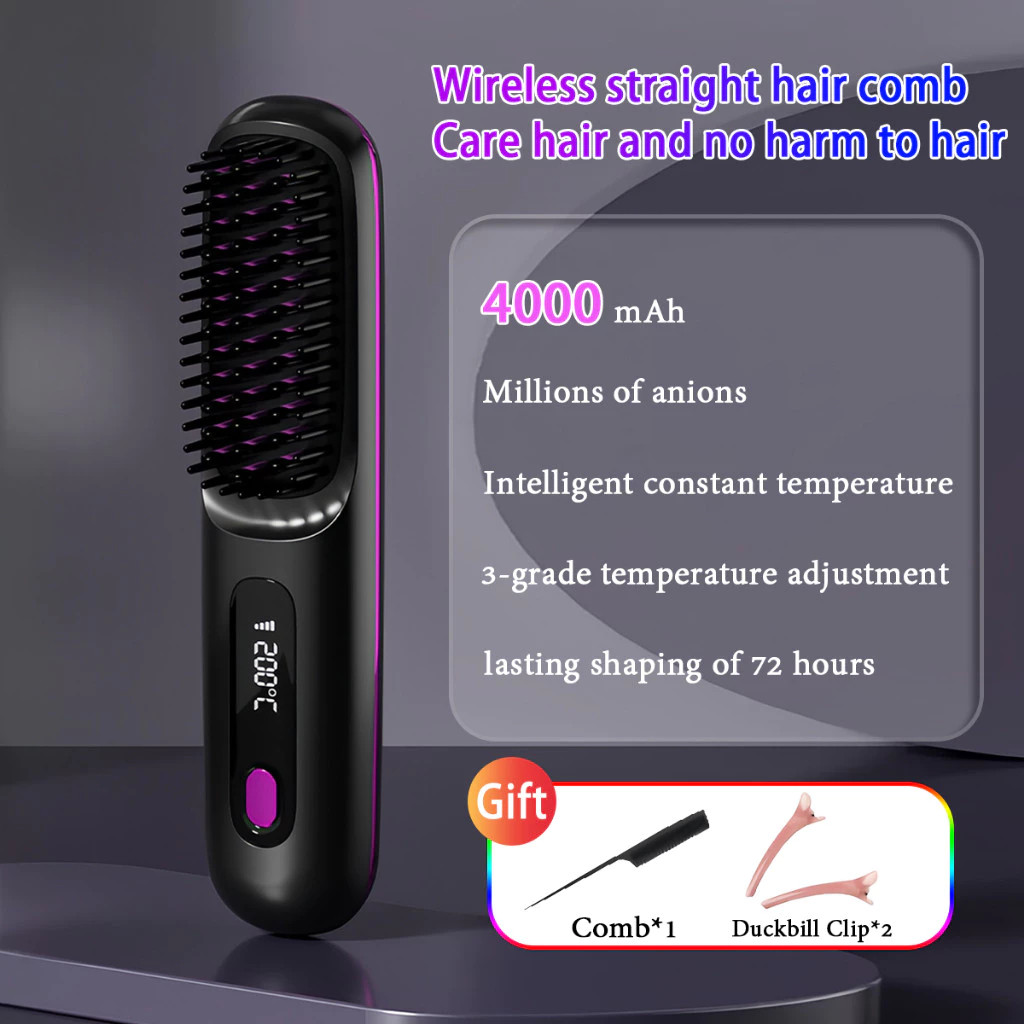 LCD USB Charging Heating Curling Power Comb Hair Straightener Wireless Portable Hair Straightening