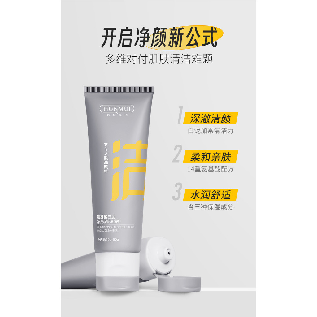 Han Lun Meiyu Amino Acid White Mud Cleansing Double Tube Facial Cleanser Facial Cleansing Moisturizing Oil Control Refreshing Facial Cleanser Ready stock2.3