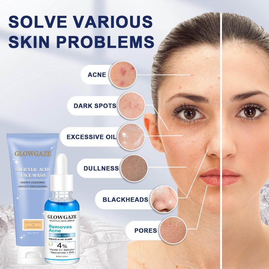 Acne Emergency Duo 6% Salicylic Acid Essence Anti-Bacterial Facial Cleanser Blackhead Removal & Oil