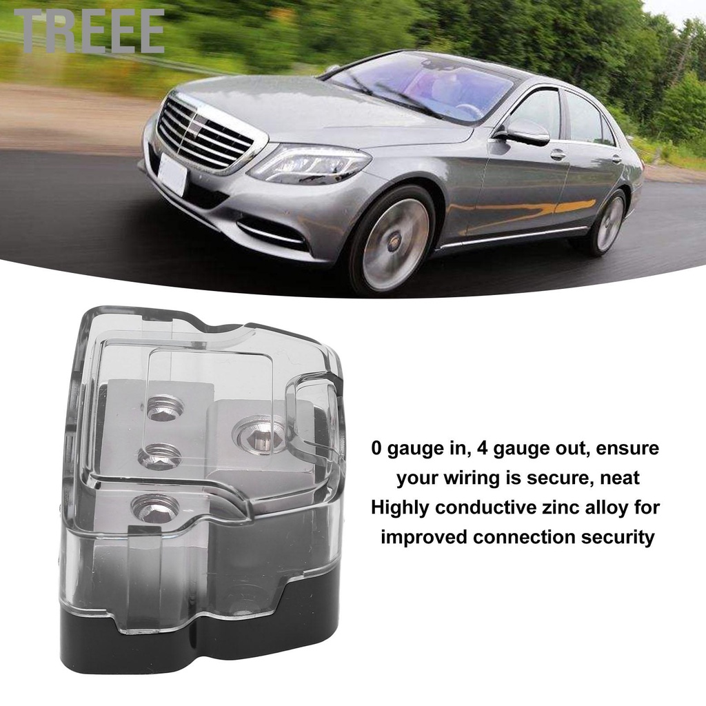 Treee 3 Way Power Distribution Block Ground Distributor Audio Splitter 0 Gauge in 4 Out Universal for Car