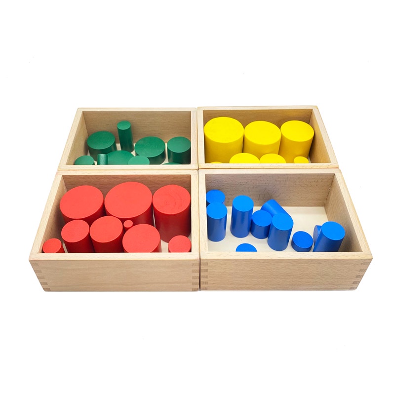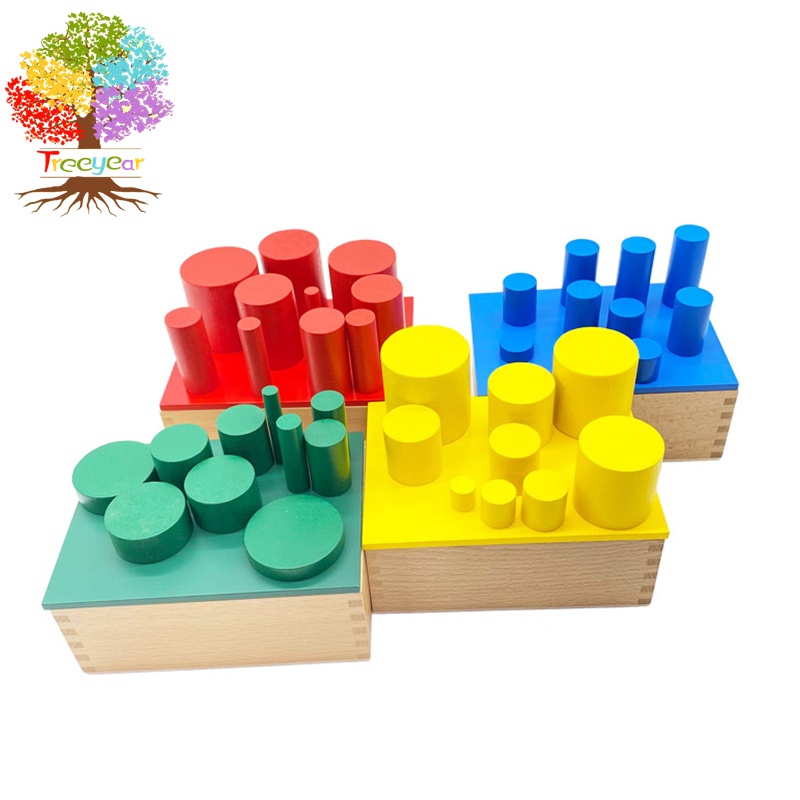Treeyear Montessori Sensorial Material Knobless Cylinders Kids Wooden Toy (Set of 4) Early Development Tool for Toddlers Wooden Blocks