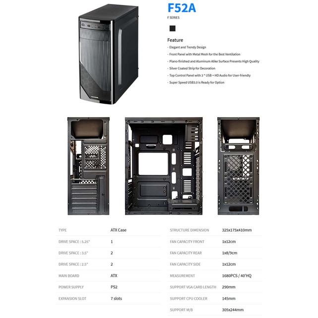 Trendsonic Frontier Fc-F52As With 700W Power Supply Mesh Type Mid Tower Atx 1Xusb 3.0 Case