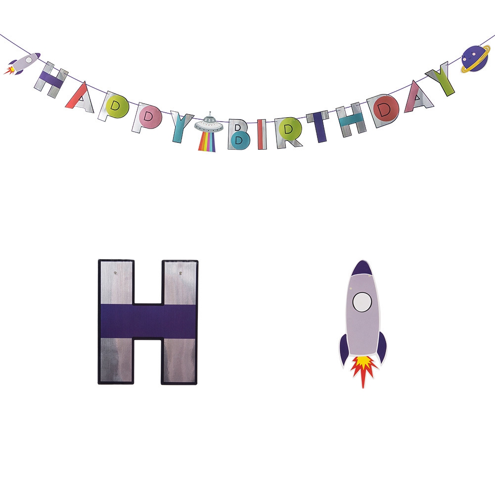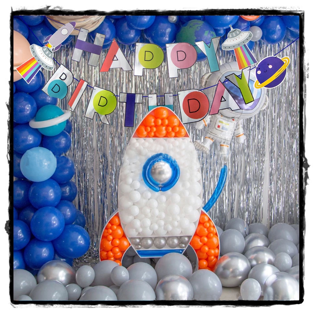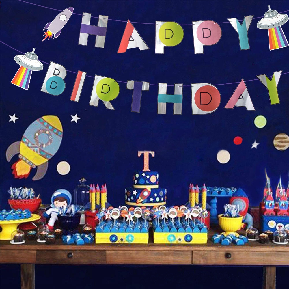 Trendy Fashion Galaxy Outer Space Happy Birthday Banner Space And Astronaut Birthday Theme Party Shower