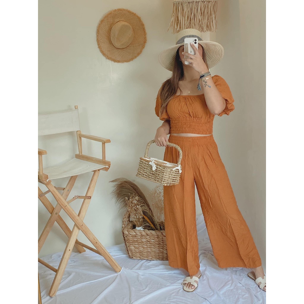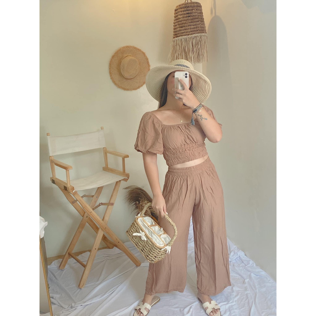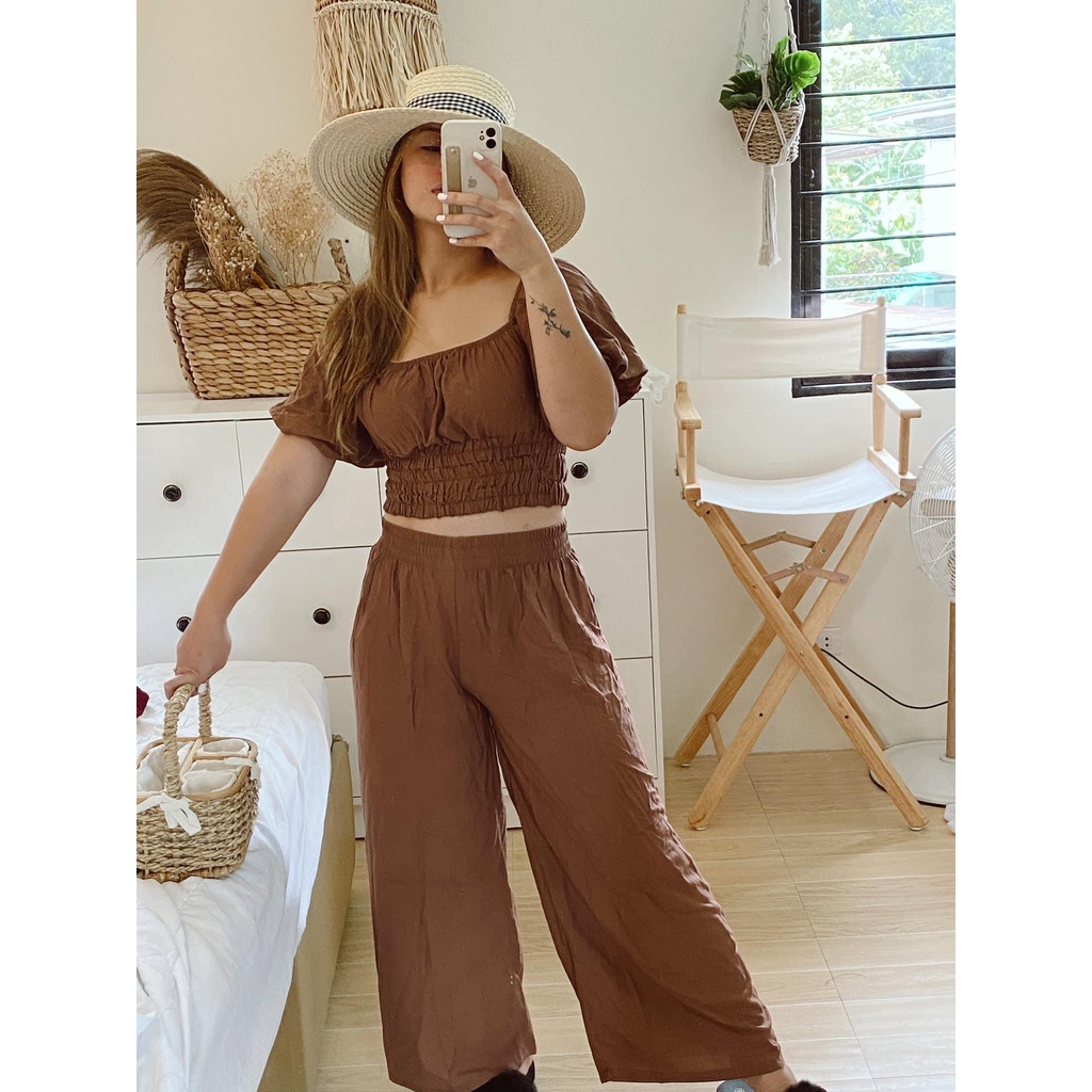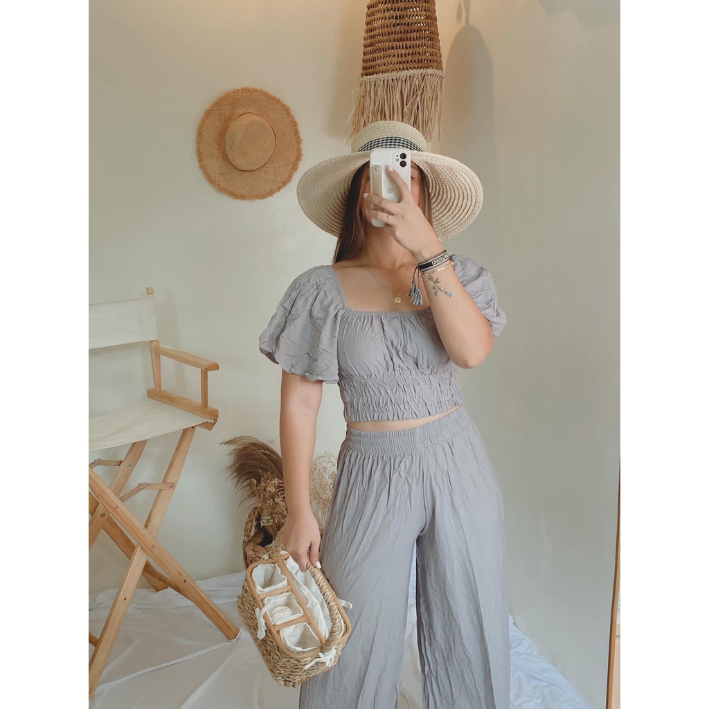 Trendy Korean Coords Puff Sleeves Beachwear Summer Pants Terno - AMANDA