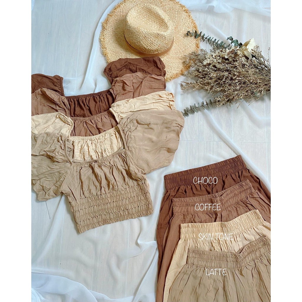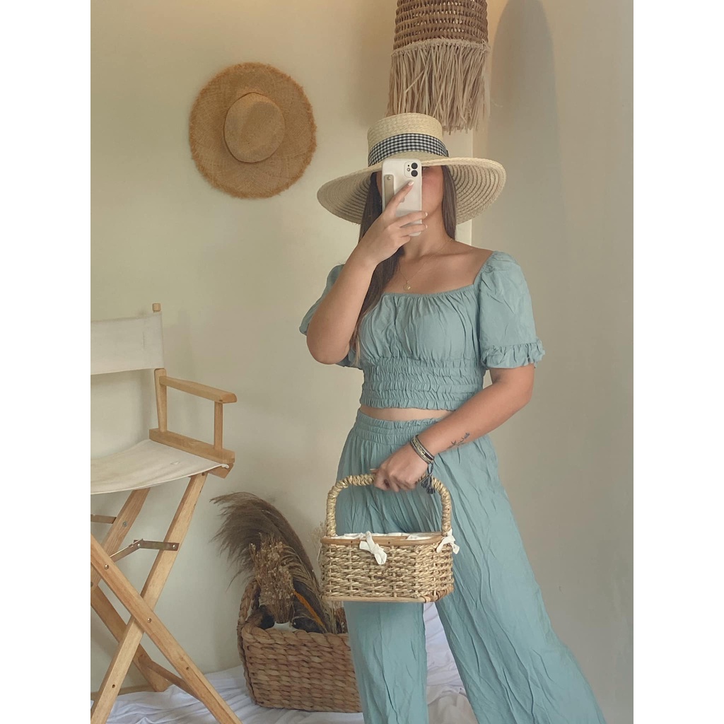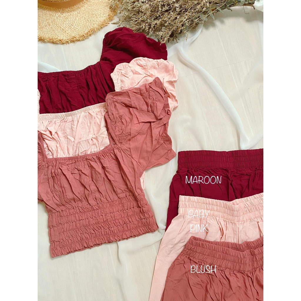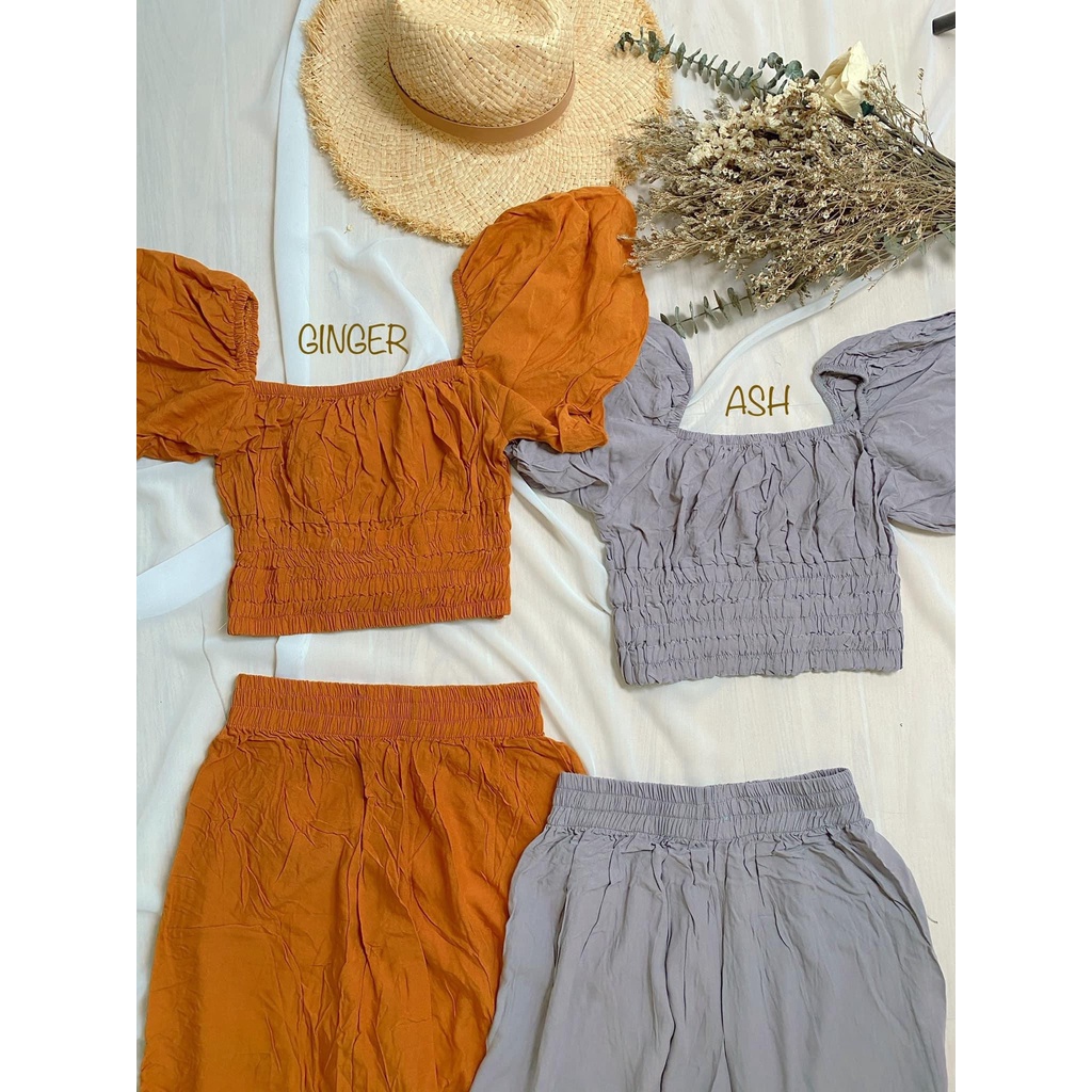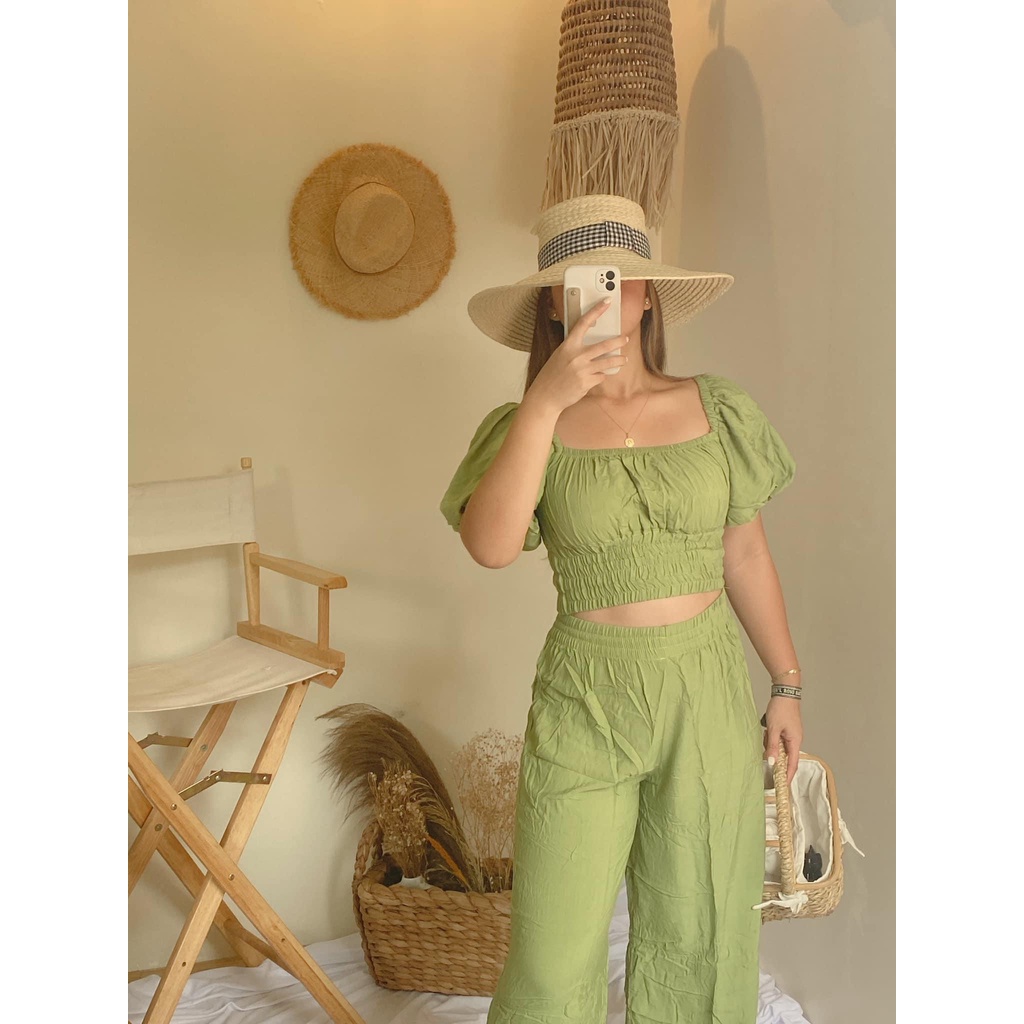 Trendy Korean Coords Puff Sleeves Beachwear Summer Pants Terno - AMANDA