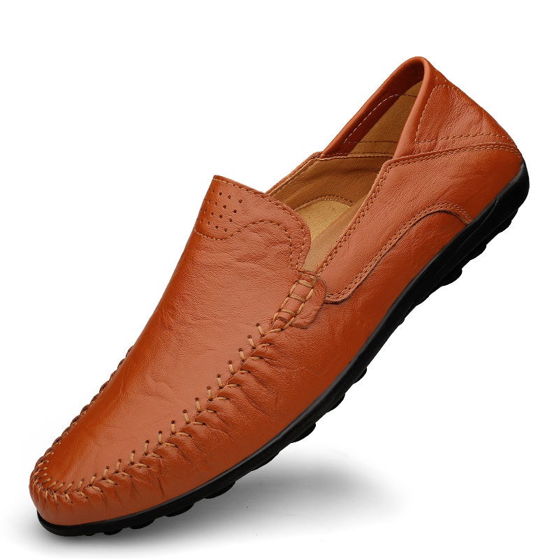 Trendy Men's Casual Shoes Soft Leather Slip On Brown Mens Business Loafers Light Walking Shoes Black