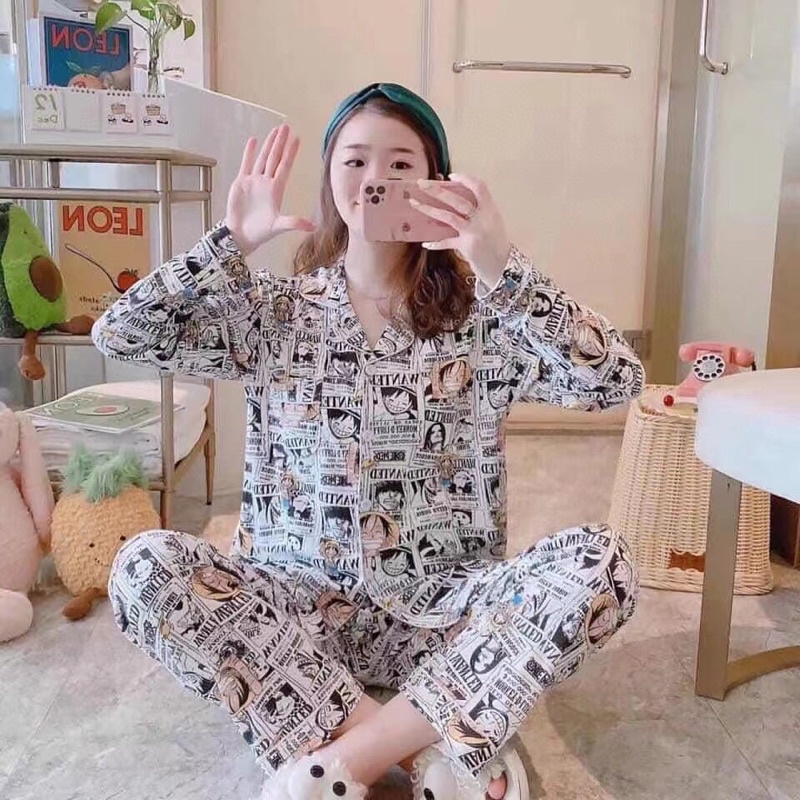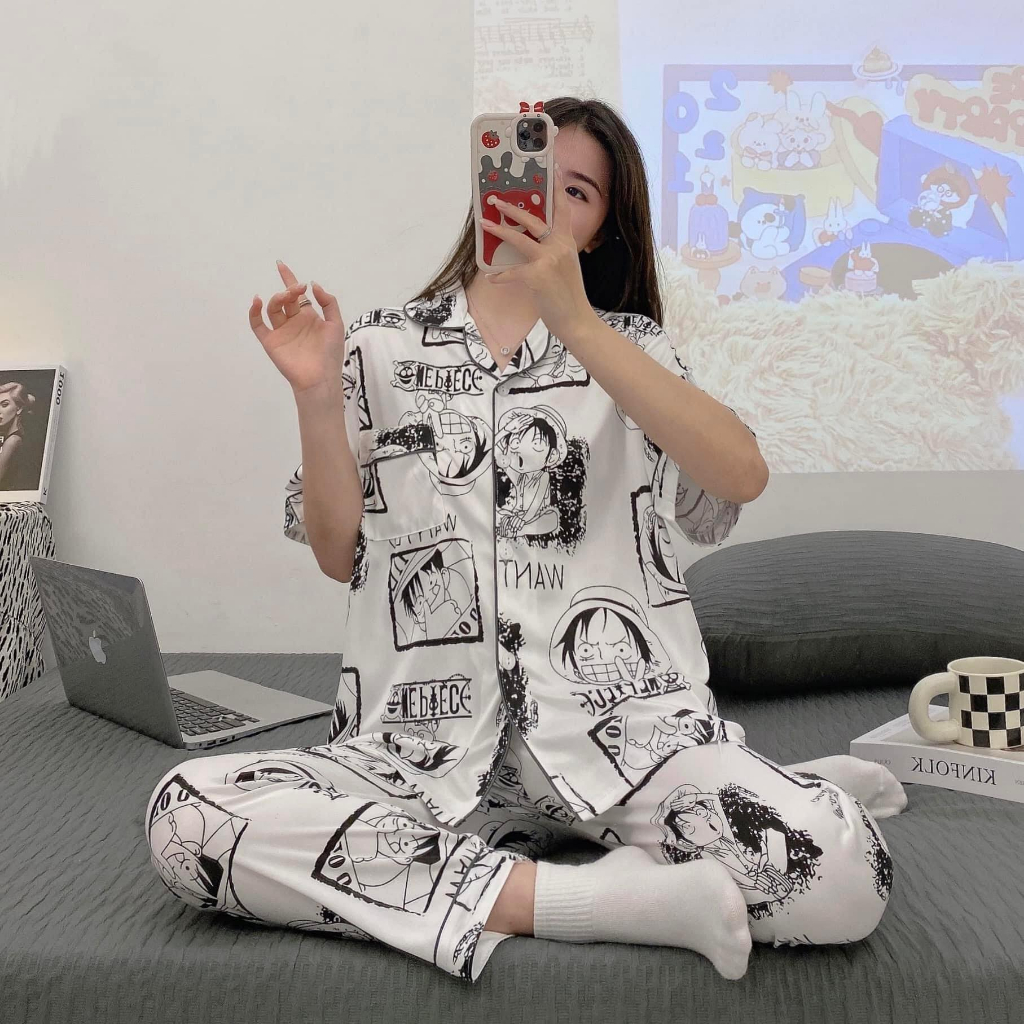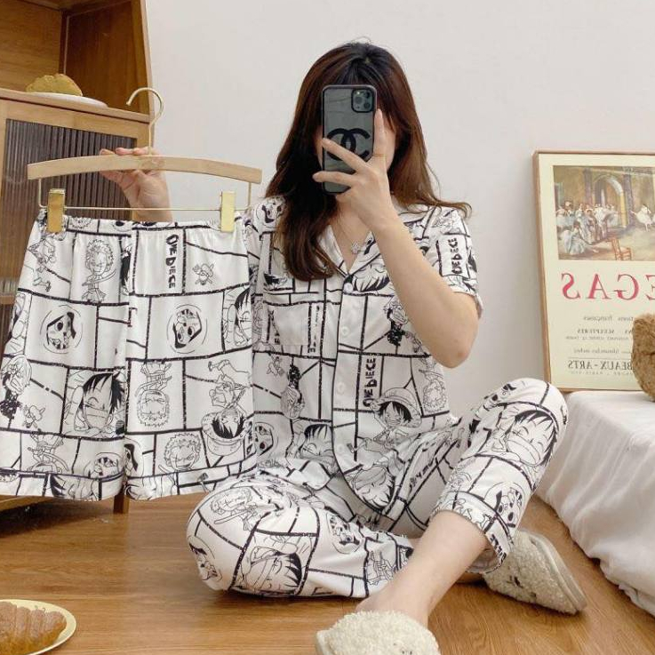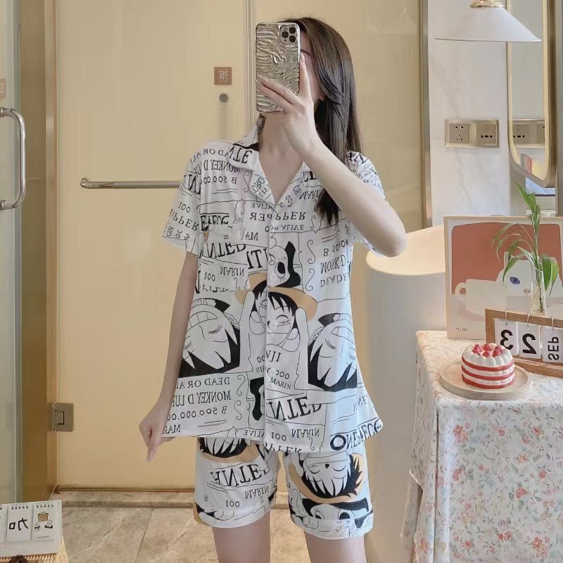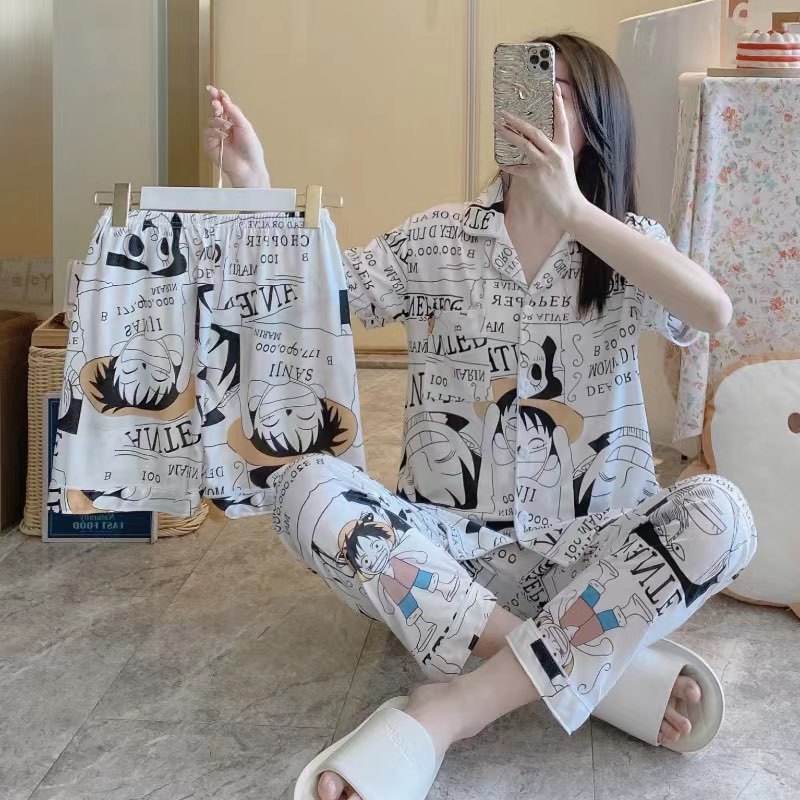 Trendy Monkey D Luffy One Piece Korean Sleepwear Pajama Terno Short Long Sleeve Set For Lounge Wear