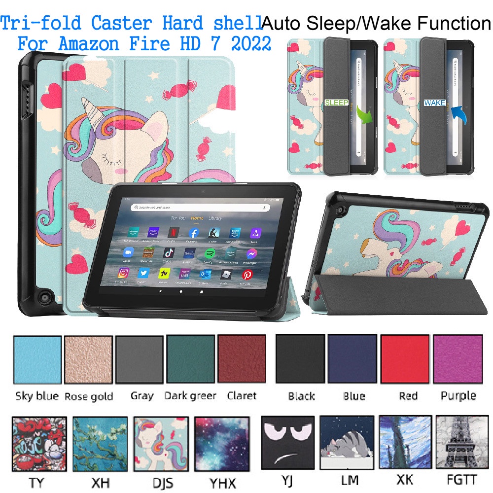Tri-fold Hard case for Amazon Fire HD 7 HD7 2022 Cover case PU Leather flip cover for Amazon HD 7 tablet case with auto wake function