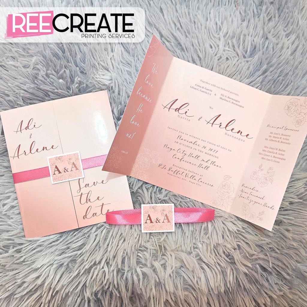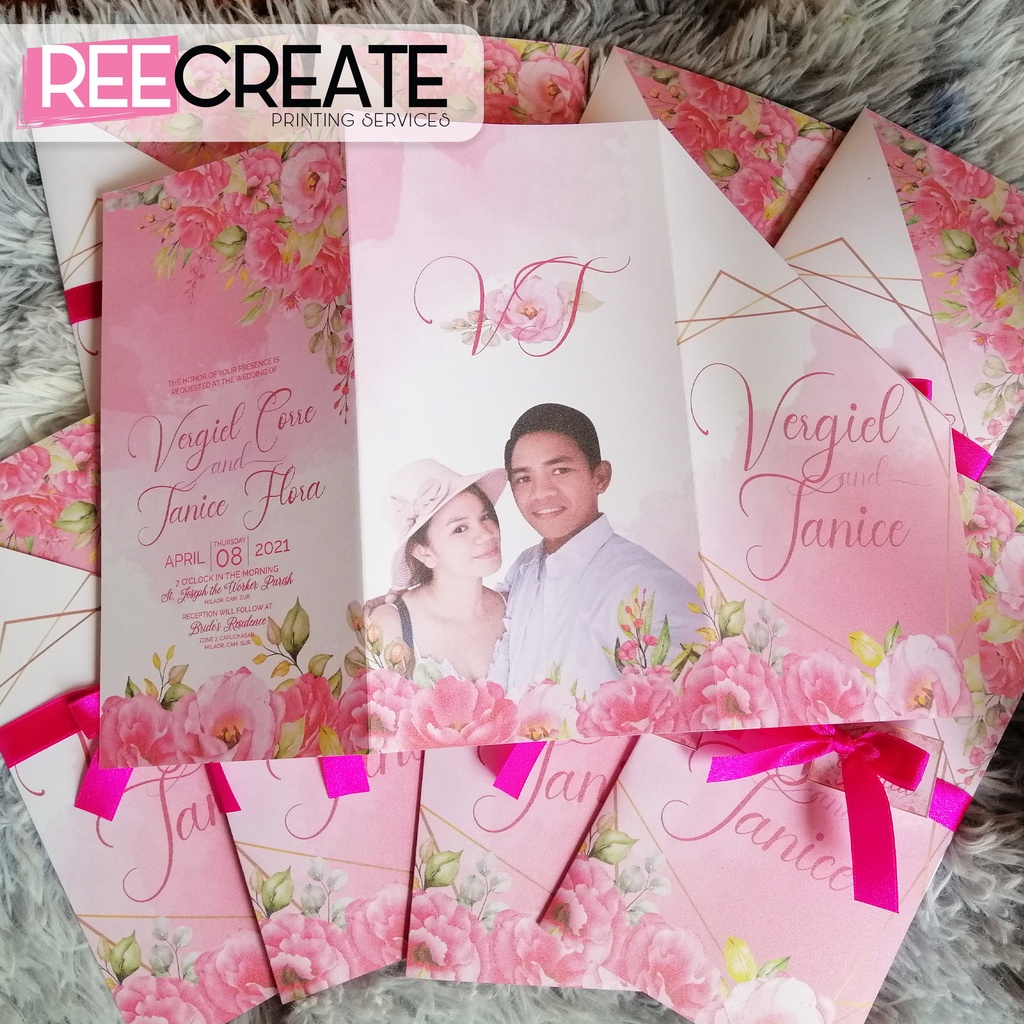Tri-fold Wedding Invitation - minimum 10pcs - Free layout if 30pcs or more orders