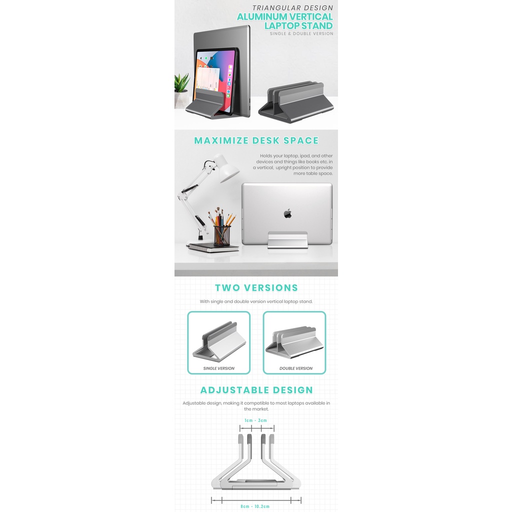 Triangular Design Aluminum Vertical Laptop Stand Adjustable Laptop Holder (3 COLORS AVAILABLE)