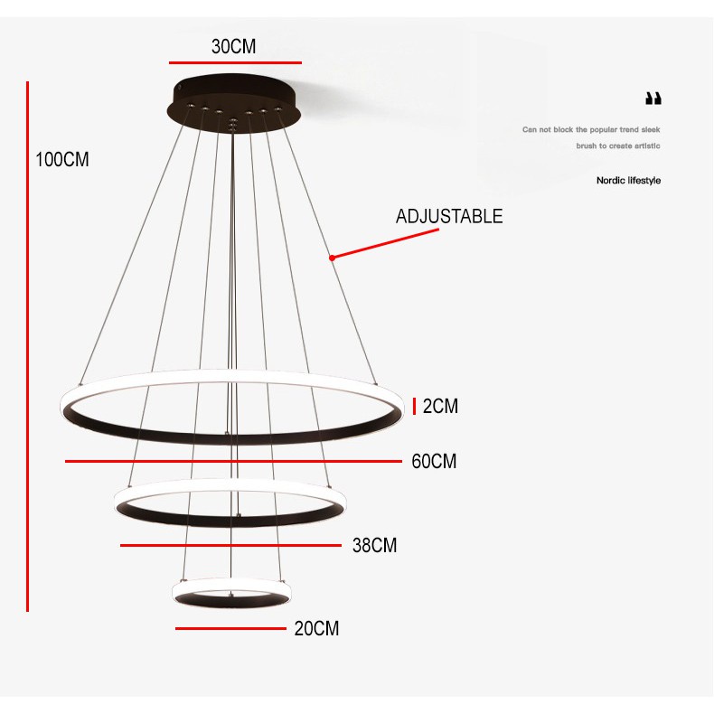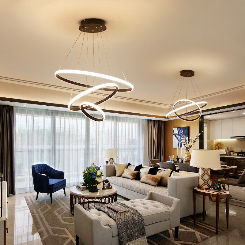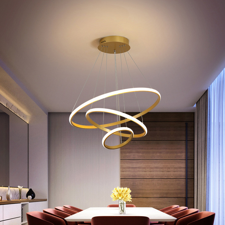 Tricolor light With remote control Modern chandelier Led three-ring Lamp Dining Room Ceiling Lights