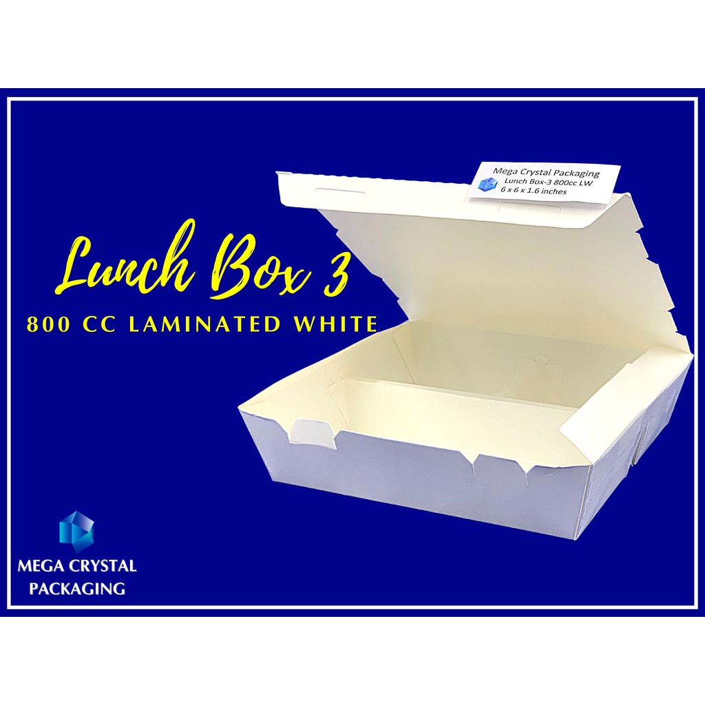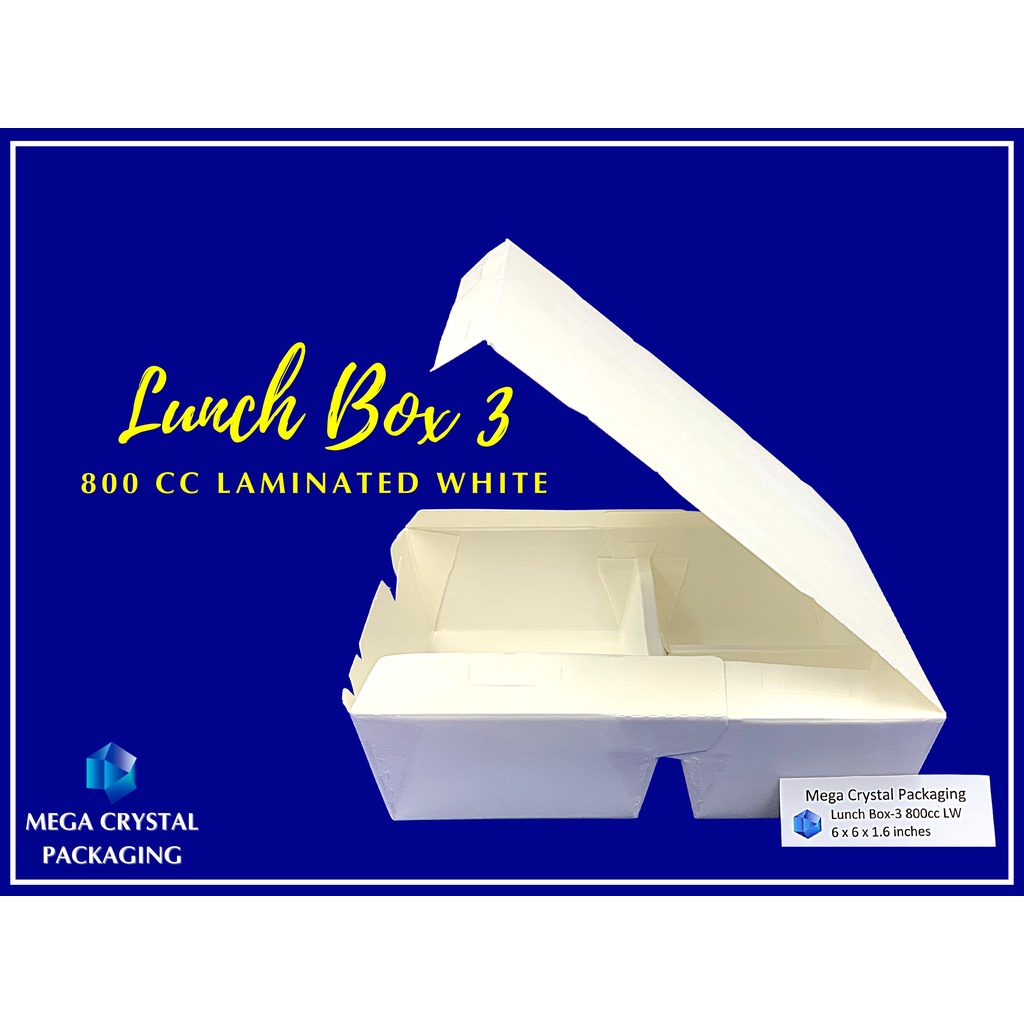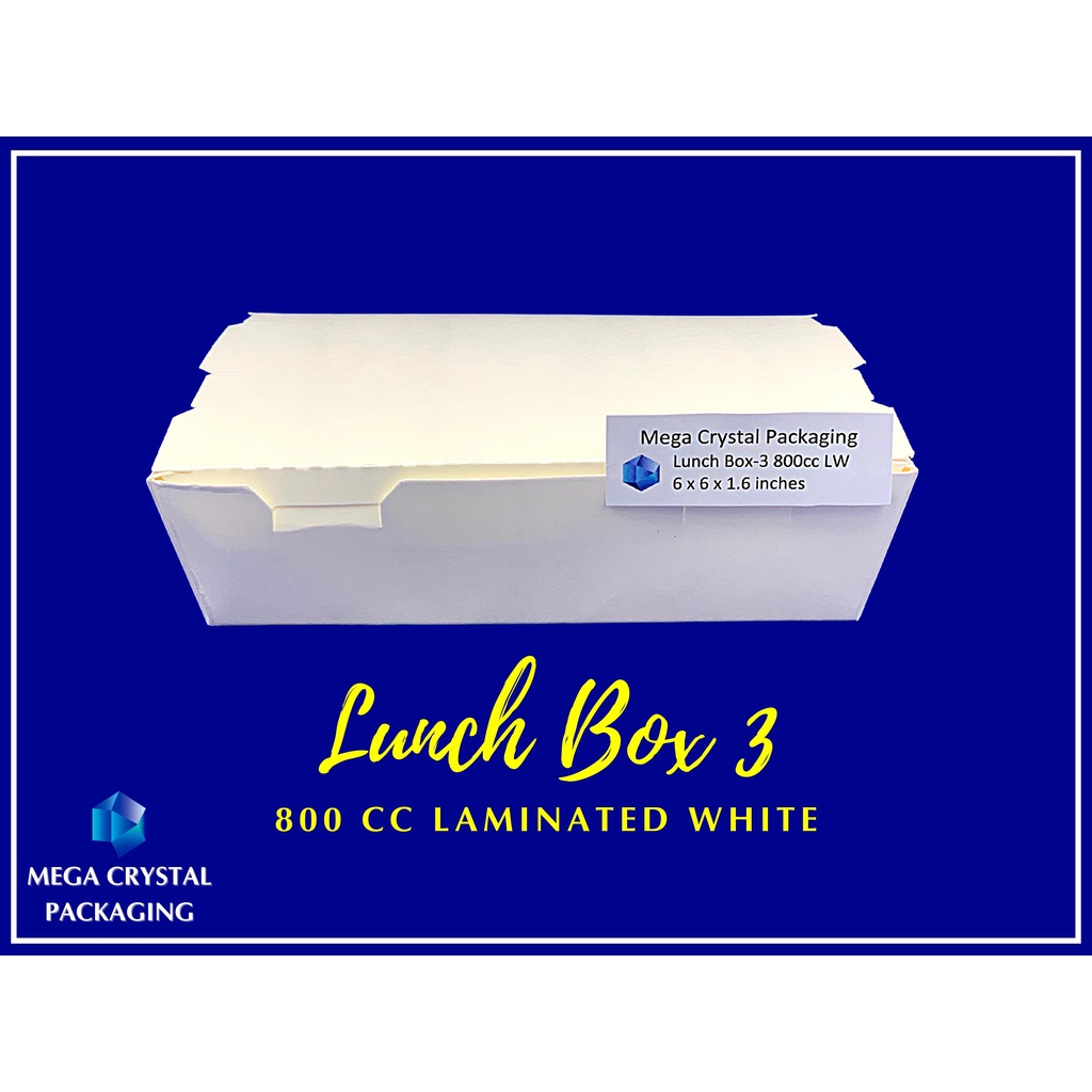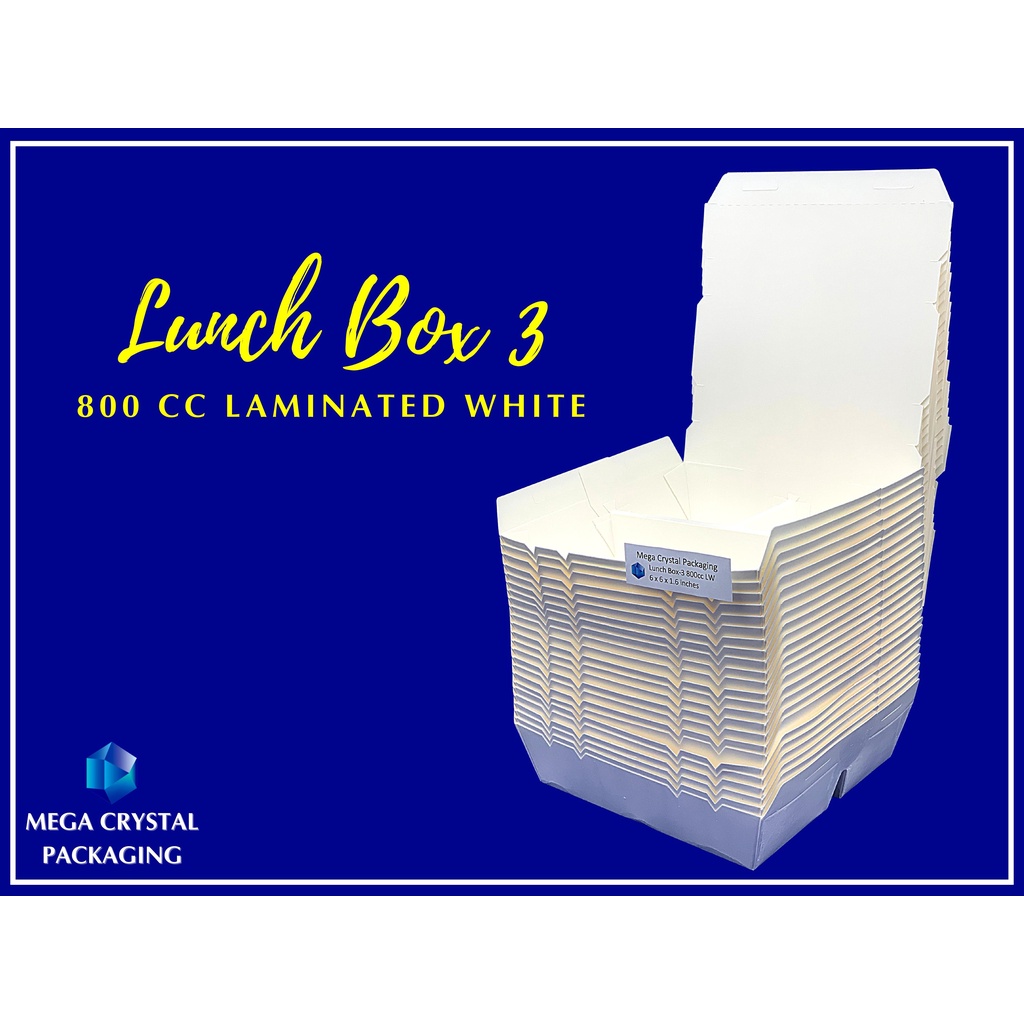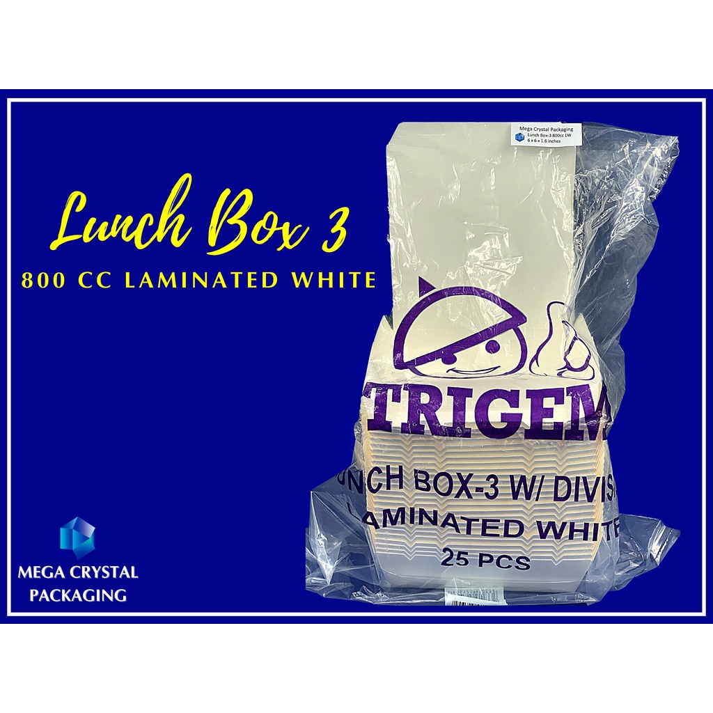 Trigem Meal Box 3 Division 800 cc Laminated White ( 25 pcs. Per Box ) Lunch Box