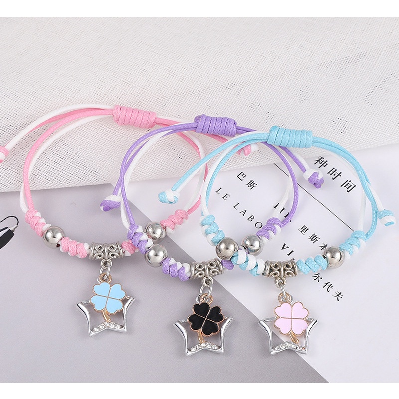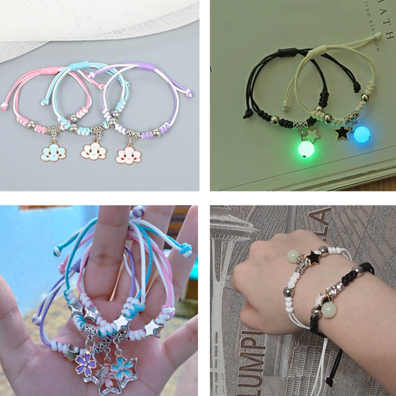 Trio Friendship Bracelet for 3 2 4 Best Friend Couple Bracelets Adjustable Luminous Bracelet Clover Pendant Lucky Charm Birthday Gift for Boyfriend