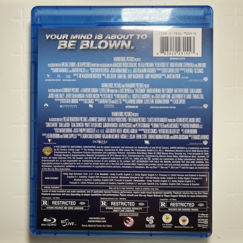 Triple Feature Blu-ray Movies (V For Vendetta, Watchmen and Constantine Blu-ray Movies)