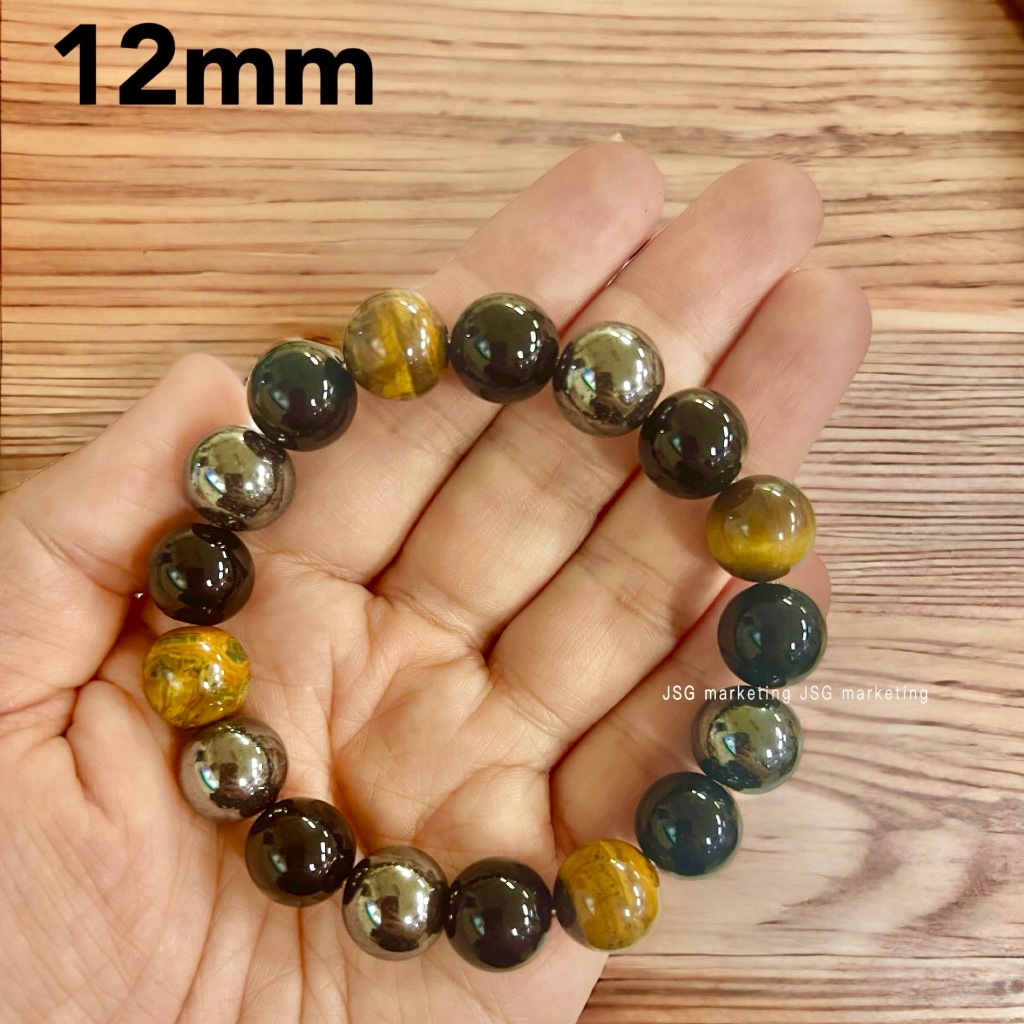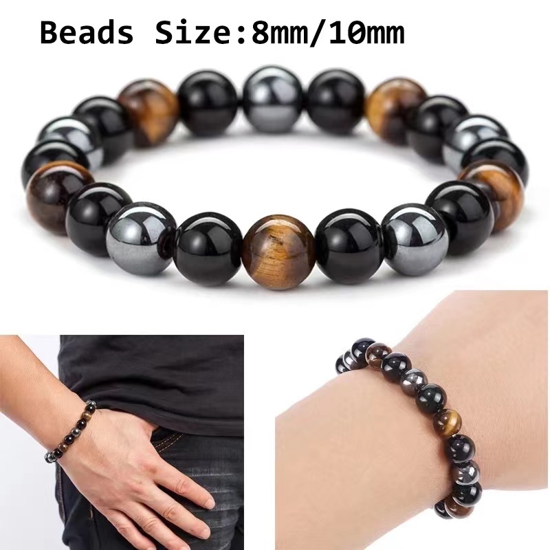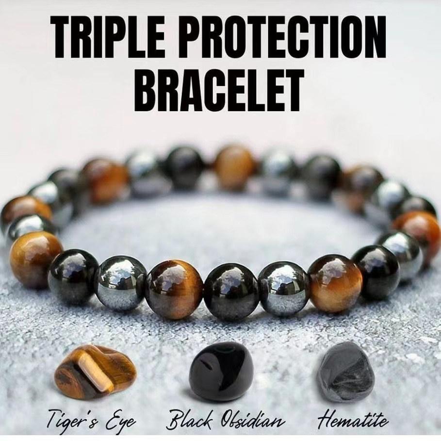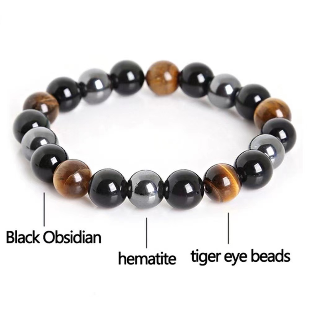 Triple Protection Bracelet Magnetic Tiger Eye Health Care Magnet Slimming Black Obsidian carrie.shop