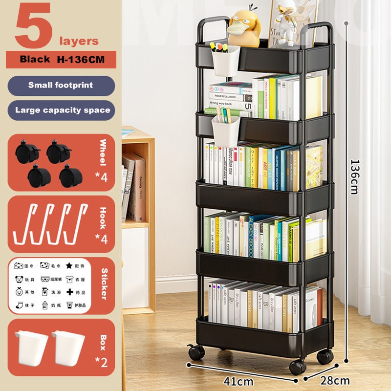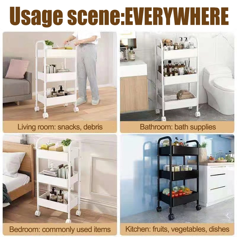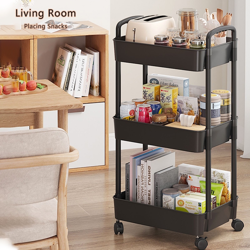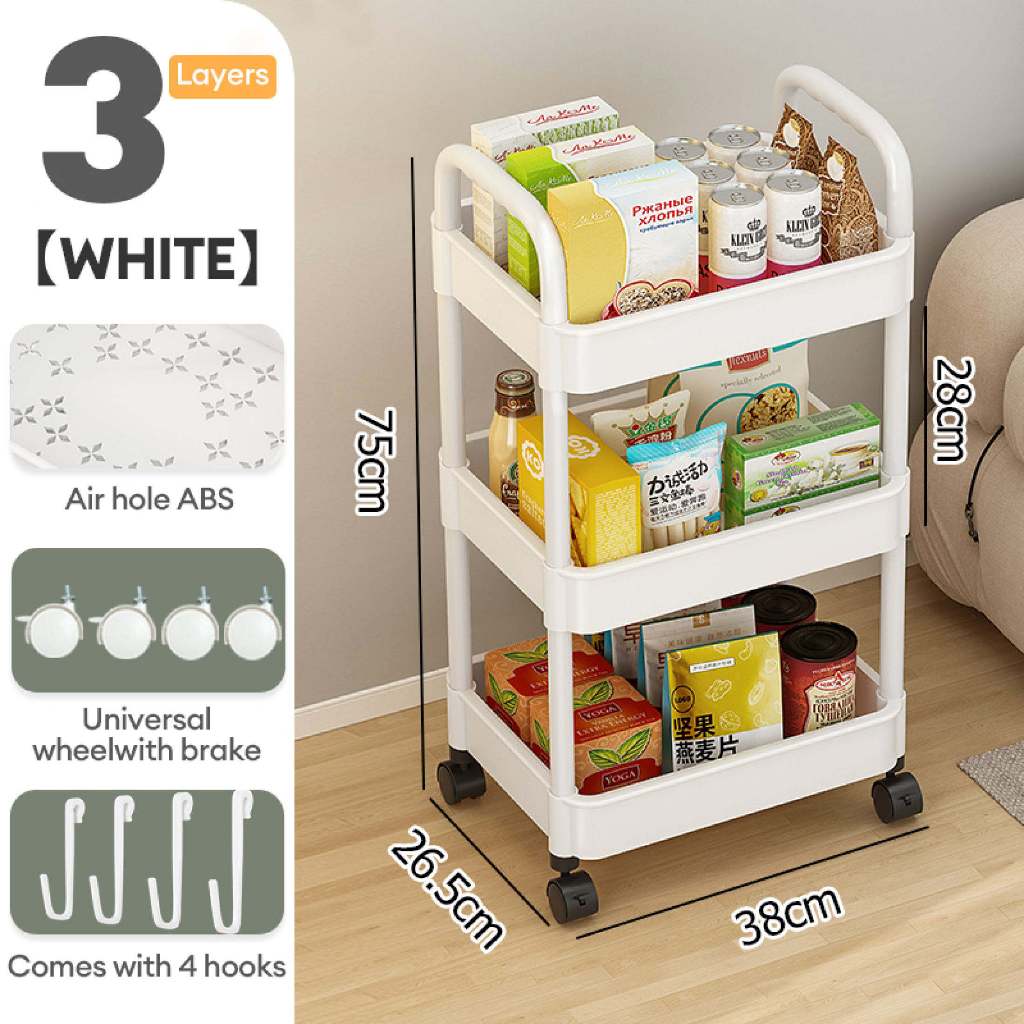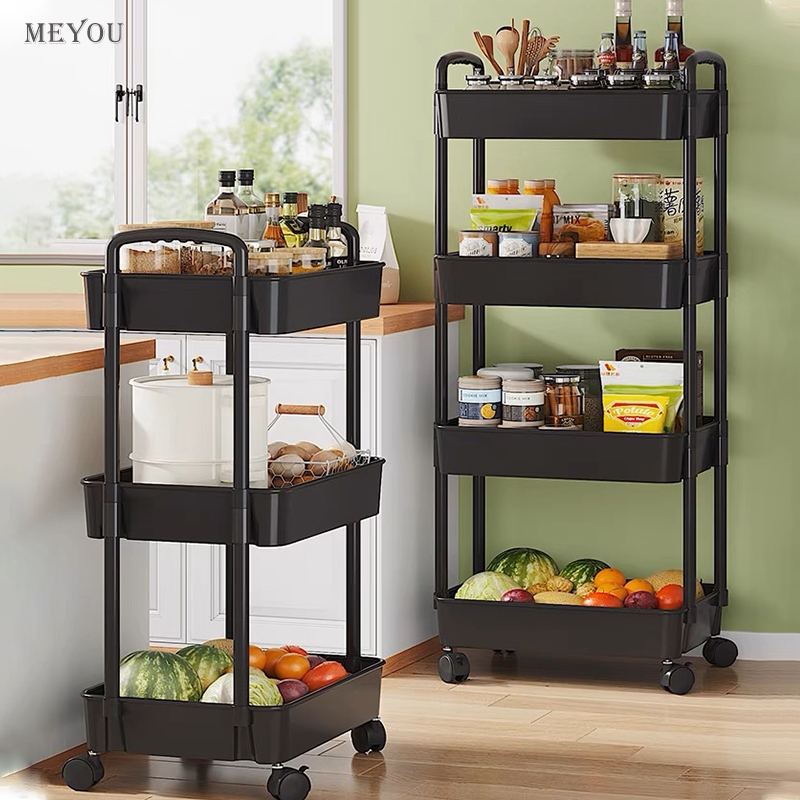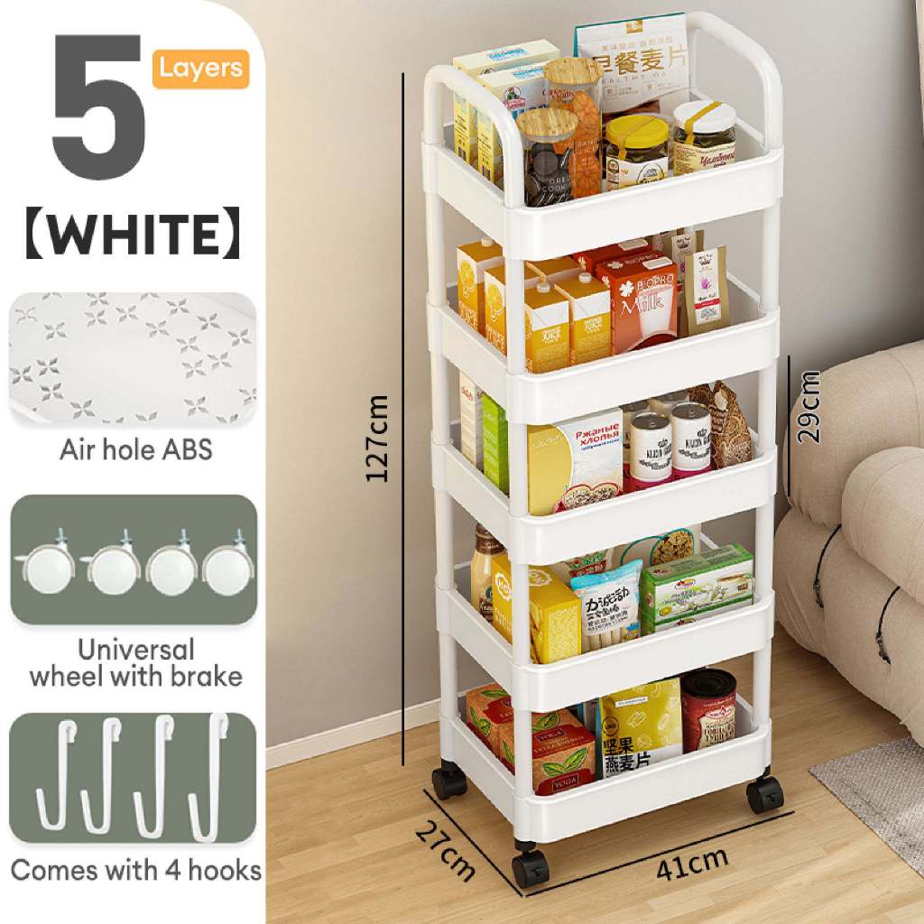Trolley Cart Shelf 3/4/5 Tier Moving Rack Kitchen Storage Shelf Multifunction Trolley Organizer Cart