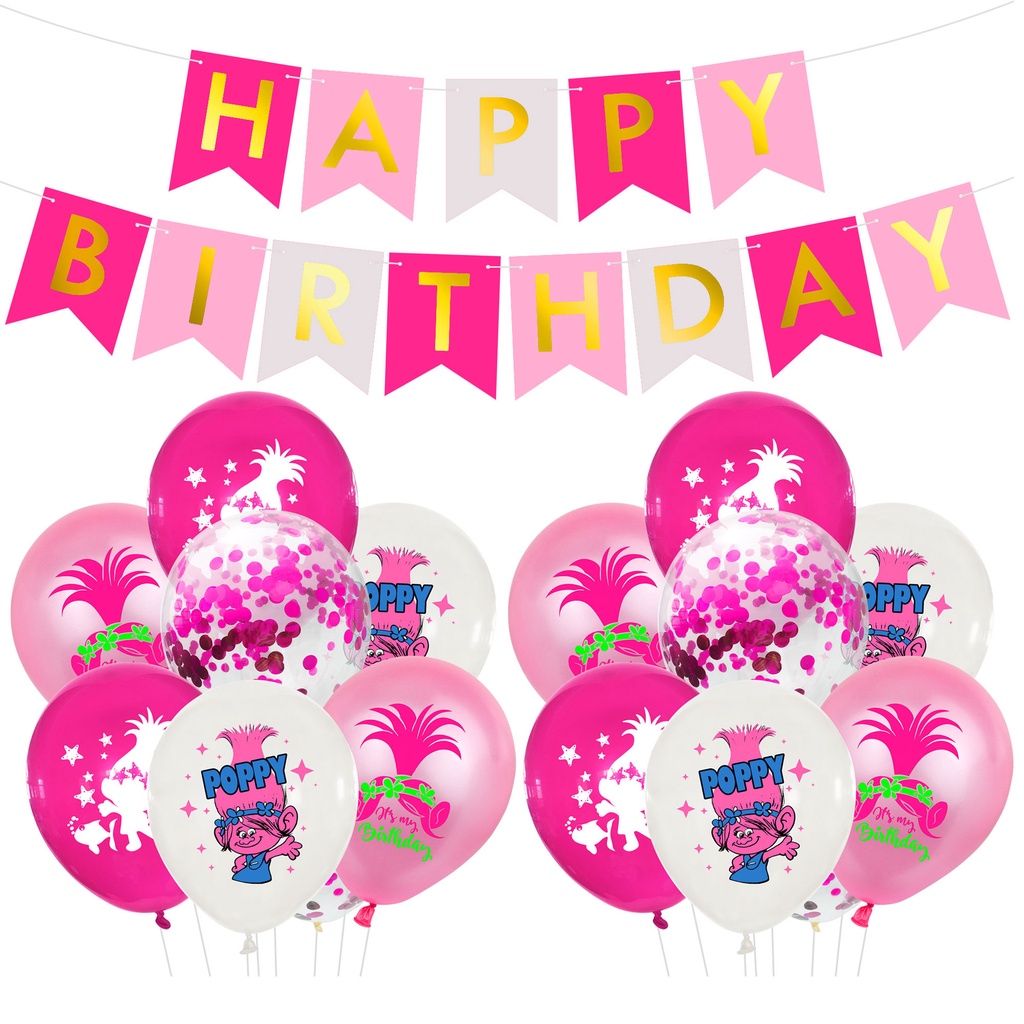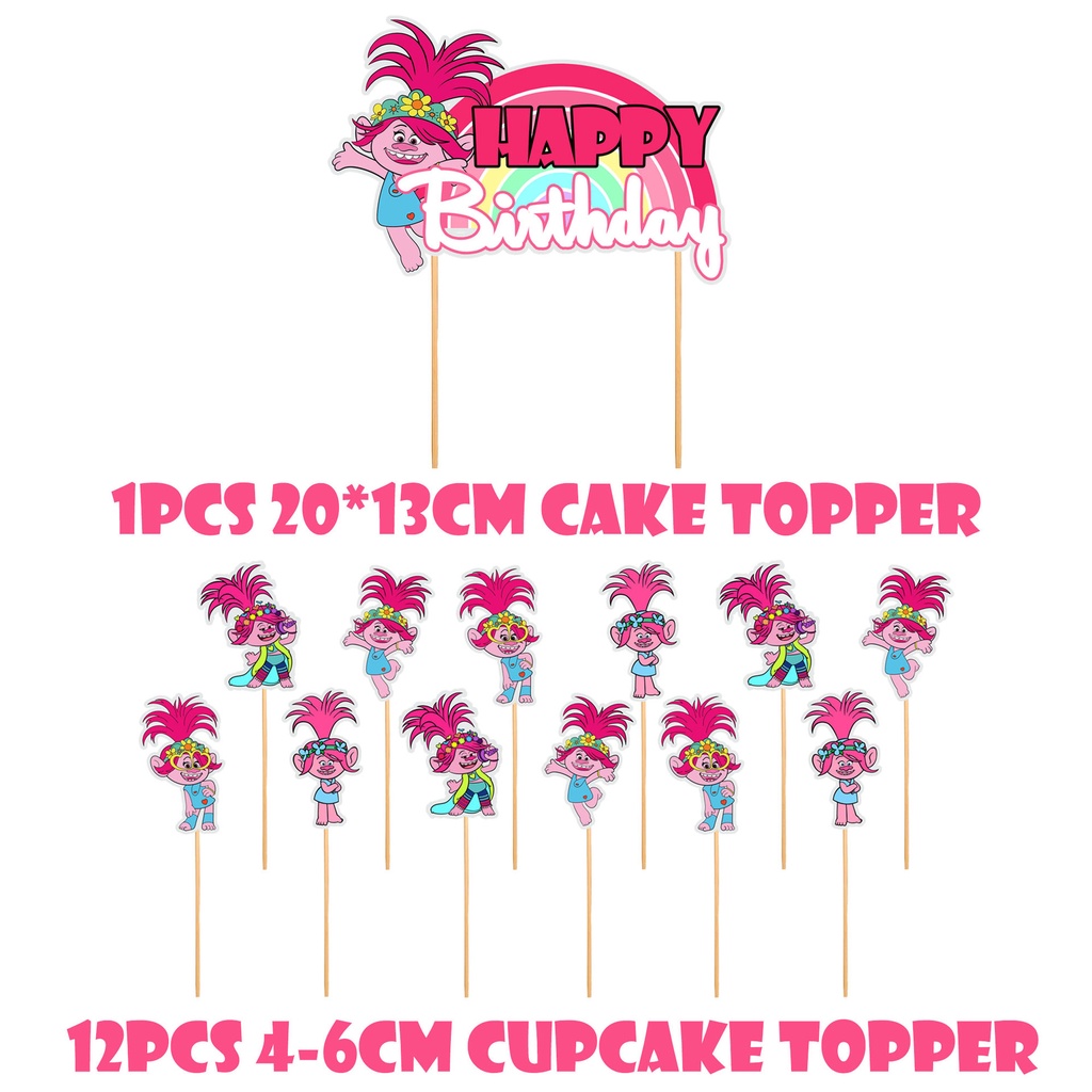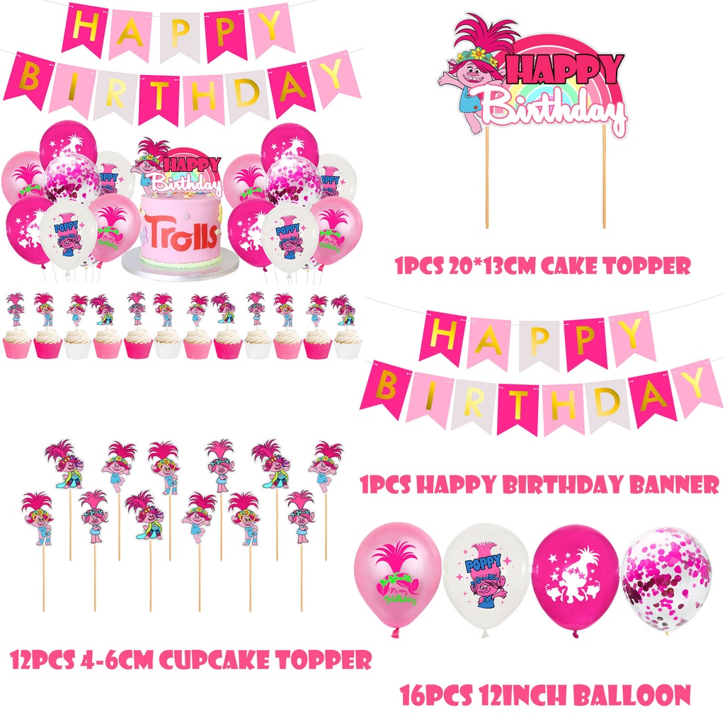 Trolls Cartoon Theme Birthday Party Decoration Banner Balloon Cake Topper Girl Party Baby Shower Supplies