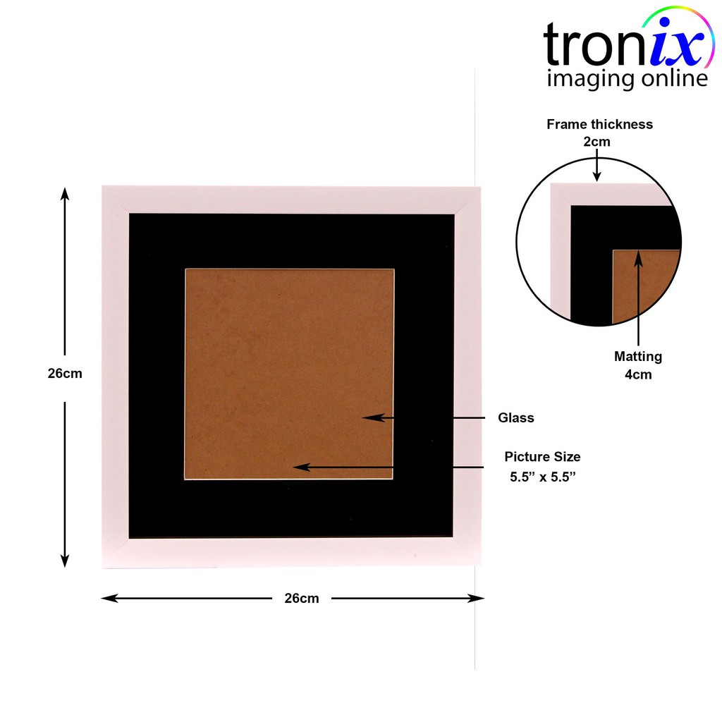 Tronix Imaging Square Picture Polystyrene Frame With Matting For 8.5 X Or 5.5x5.5 Photos