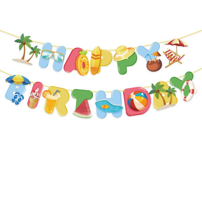 Tropical Summer Party Decorations Colorful Hawaii happy birthday Banner for Beach Pool Summer Vacation Holiday Party Decorations Supplies