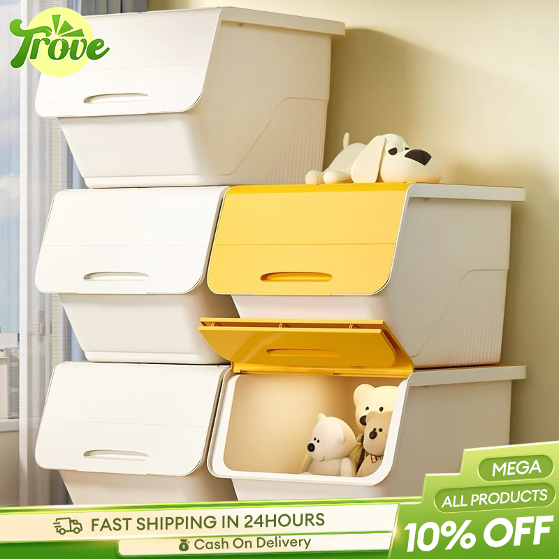 Trove Flip Top Storage Box Stackable Plastic White Storage Box with Wheels Organizer Storage Box