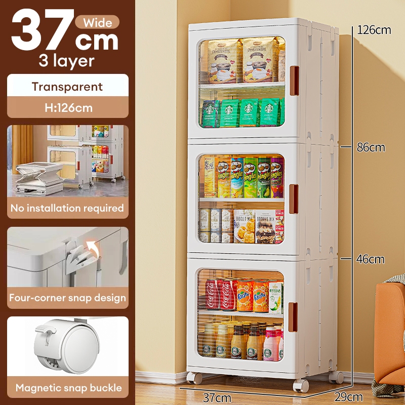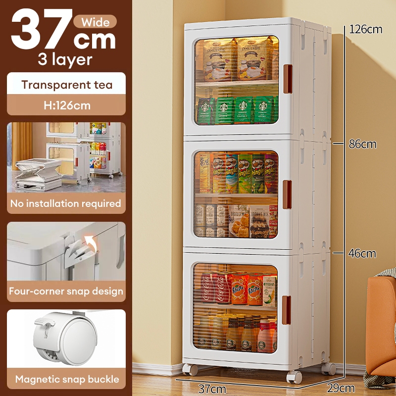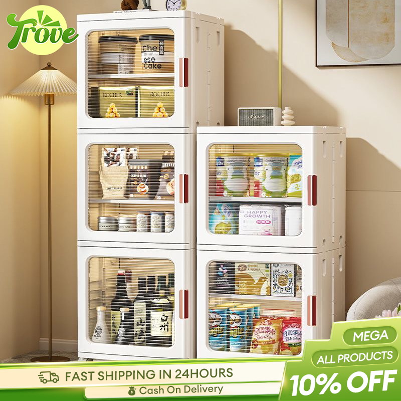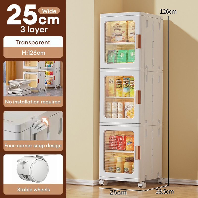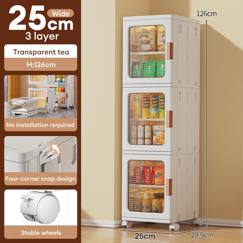 Trove Foldable Storage Cabinet Gap Storage Cabinet snack cabinet with wheel Plactic Pantry Cabinet