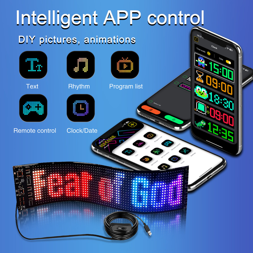 Truck Car Devil Eye LED Pixel Panel Light Remote Control Soft Foldable Lighting Scrolling for Board Windshield 12V 24V