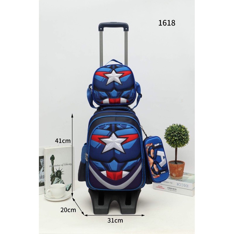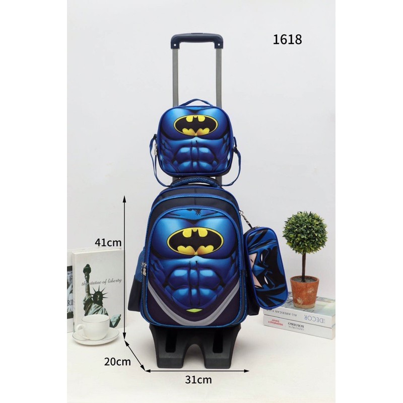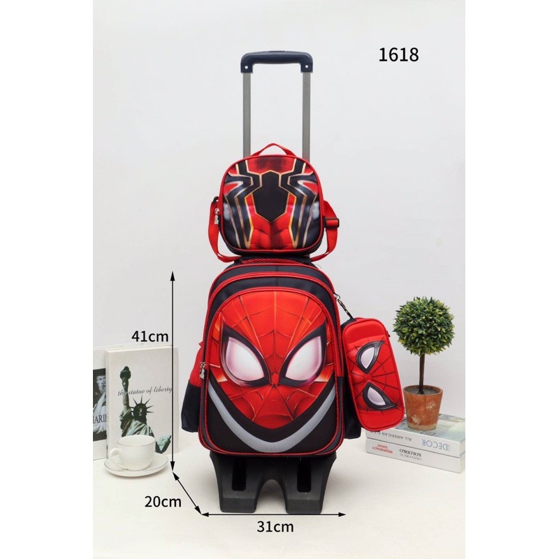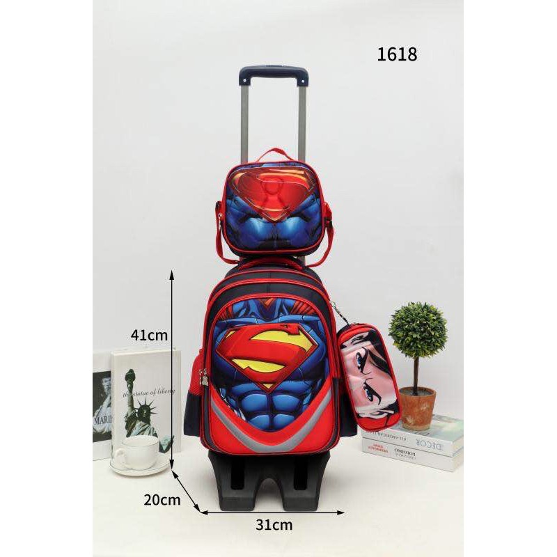 True 1618# 3D Cartoon Set 3in1 with Pouch & Sling Bag Trolley Backpack 16inch Very Good Quality