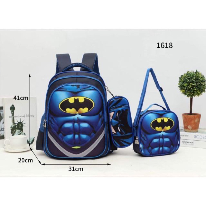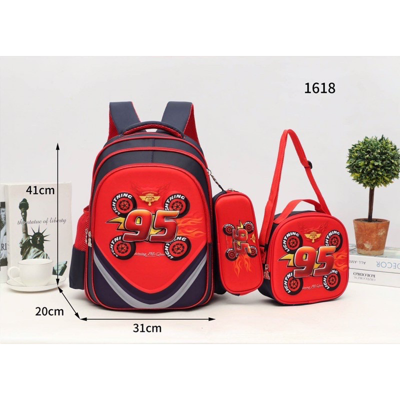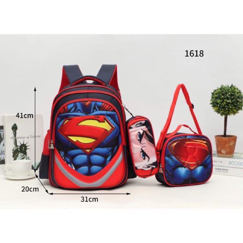 True 1618# Unisex 3D Cartoon Set of 3in1 with Pouch & Sling Bag Backpack 16 inchs