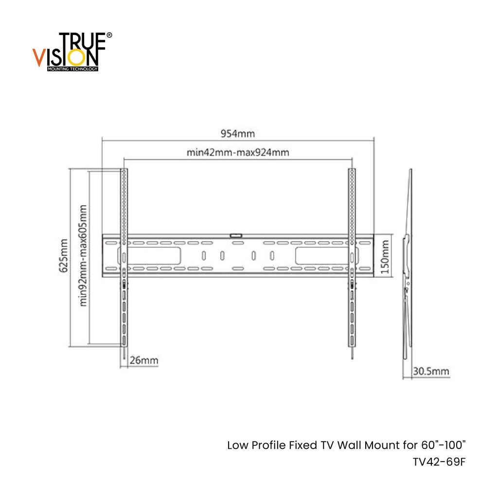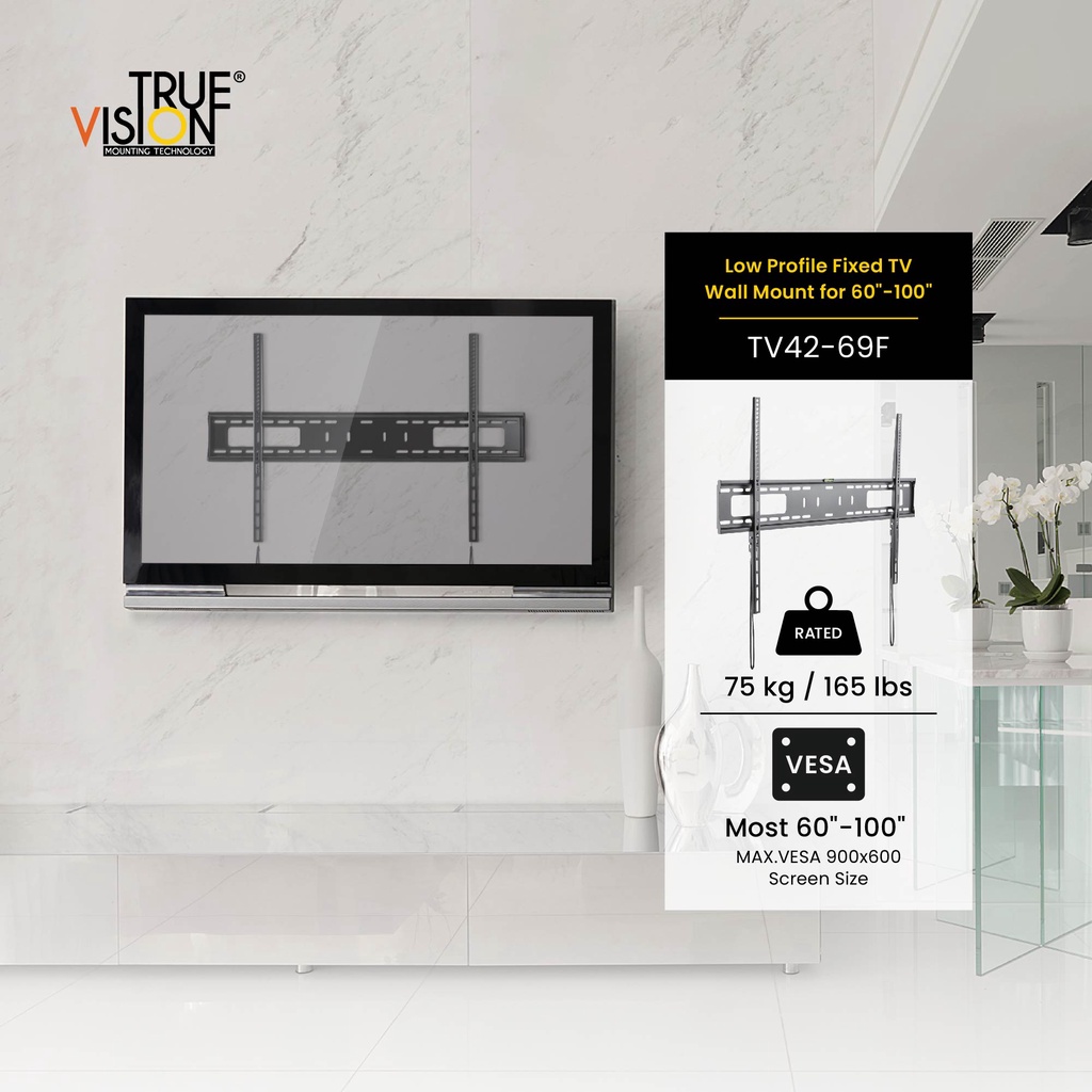 True Vision Low Profile Fixed TV Wall Mount for 60"-100" TV42-69F