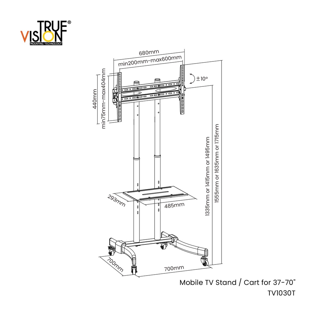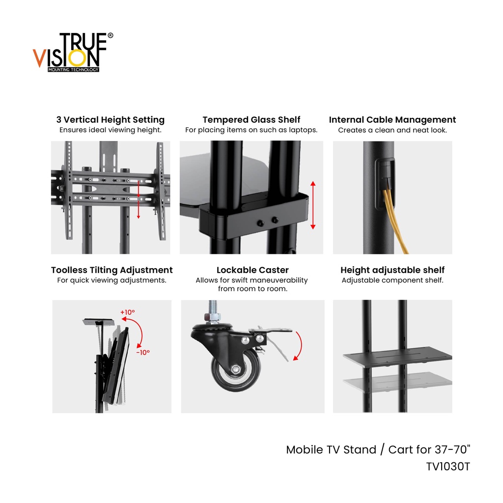 True Vision Mobile TV Stand Cart TV1030T
