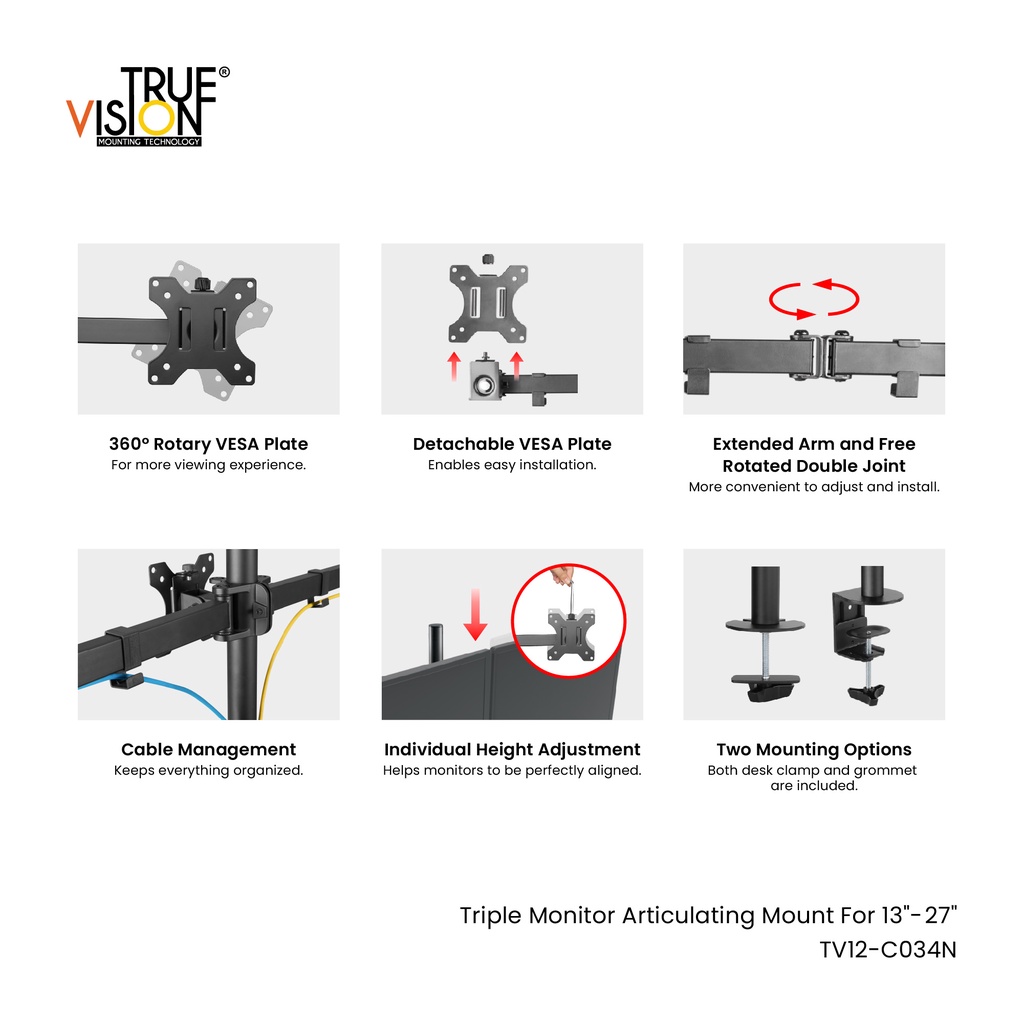 True Vision Triple Monitor Bracket for 13"-27" Monitors TV12-C034N