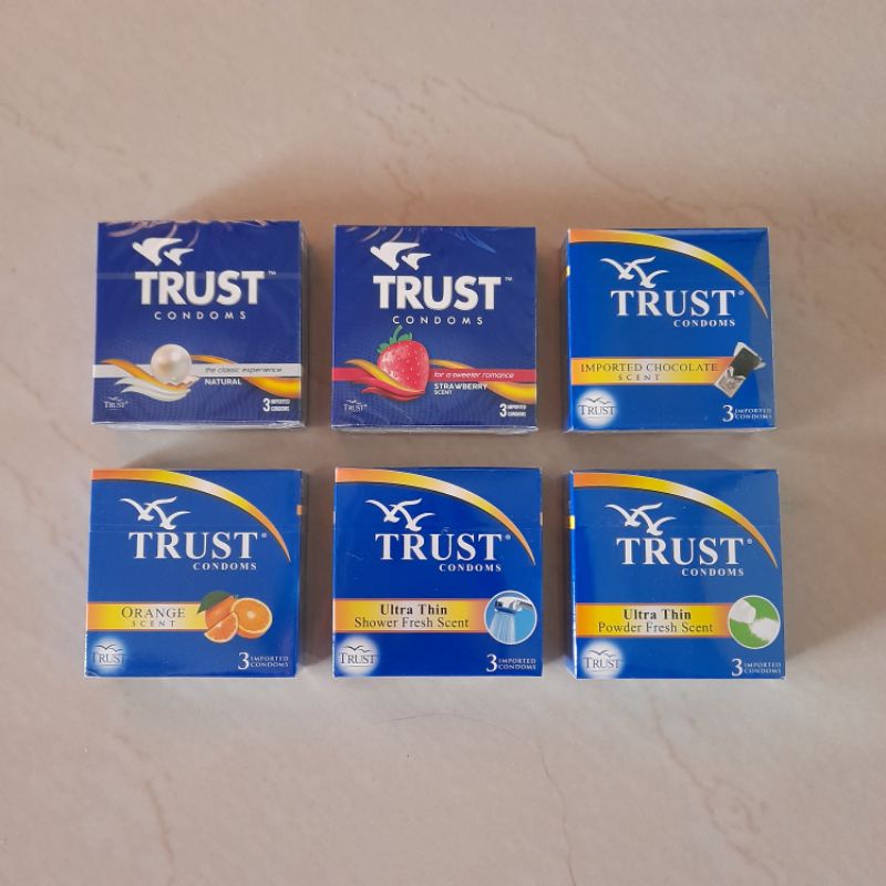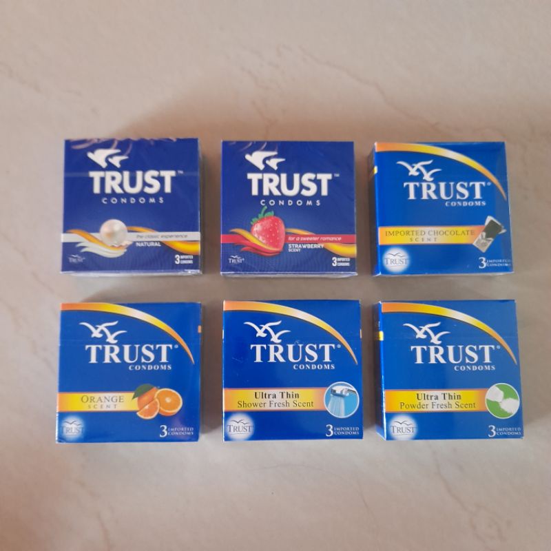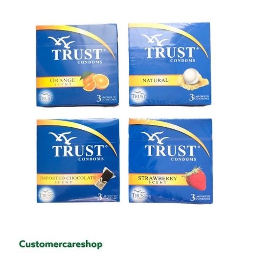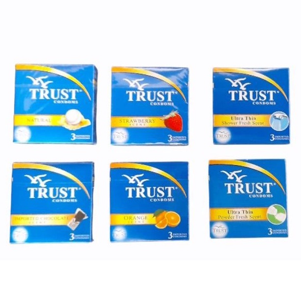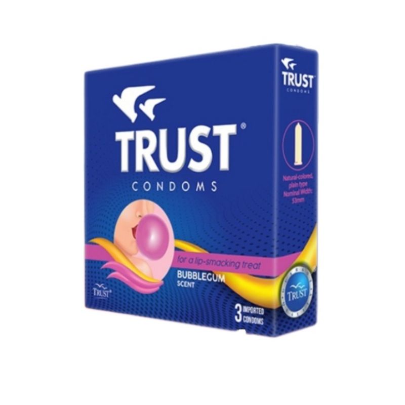 Trust Condom Natural Strawberry Chocolate Orange Bubblegum 3 condoms per box
