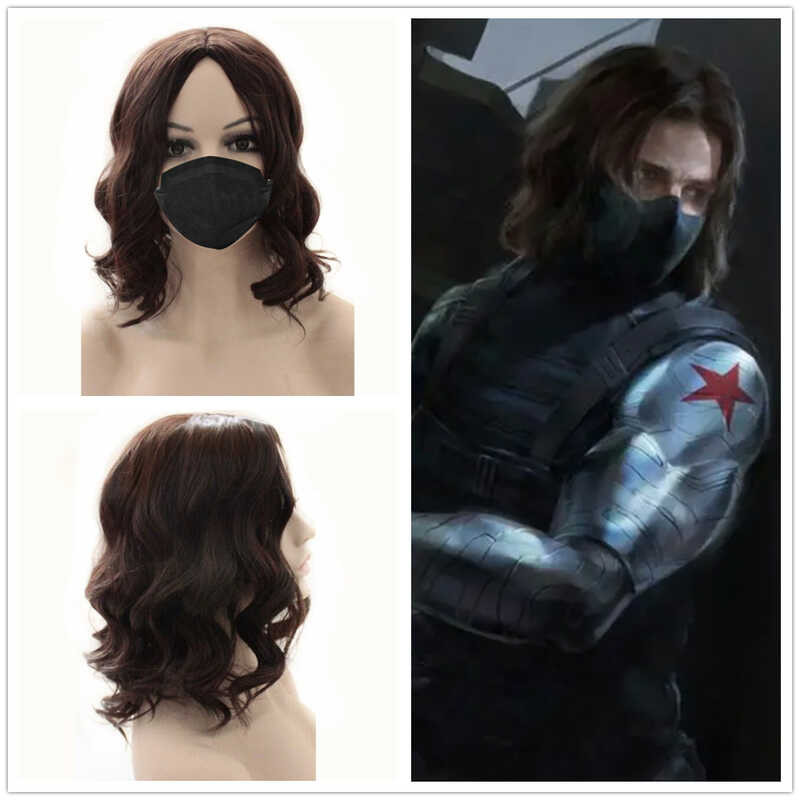 Tt Captain America COS Wig Winter Soldier Male Handsome Dark Brown Medium Split Short Curly Hair Cov