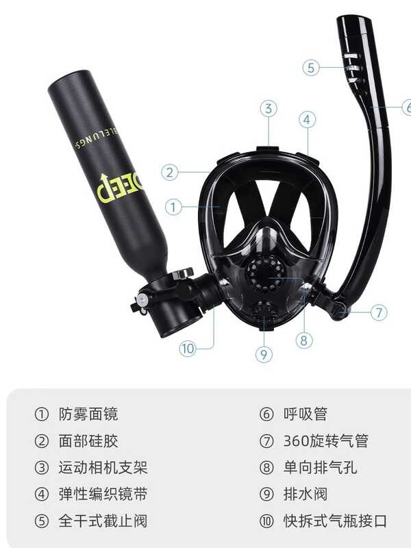 Tt Deep Sea Small Portable Underwater Diving Oxygen Tank With Goggles, Breathing Tube, Ful