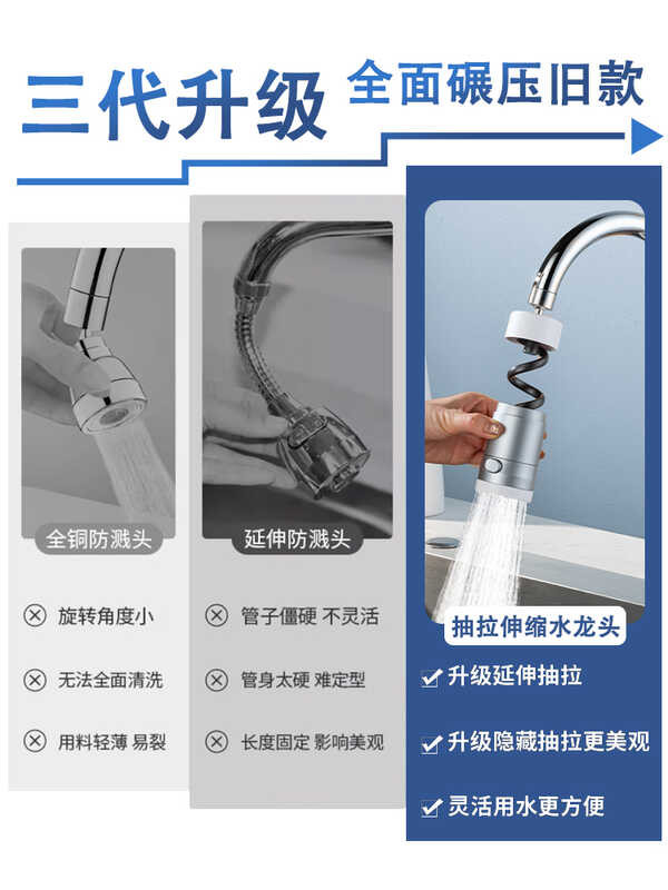 Tt Kitchen Faucet Extender Anti-Splash Retractable Pull-Out Aerat Sink Basin Shower Universal