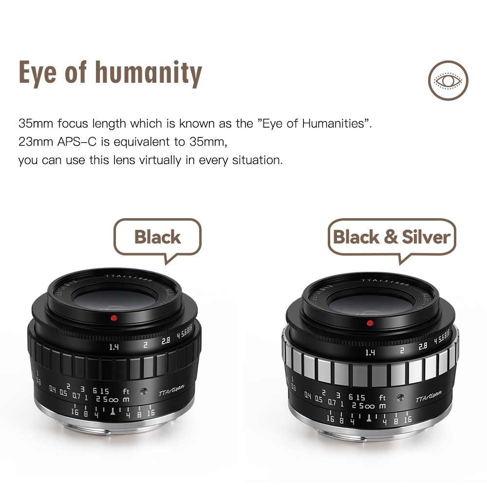 Ttartisan 23mm F1.4 Manual Focus APS-C Fixed Lens for Canon M / RF / Sony E / Fuji X / M43 / Nikon Z / L Mount Mirrorless Camera.