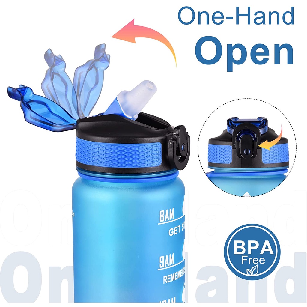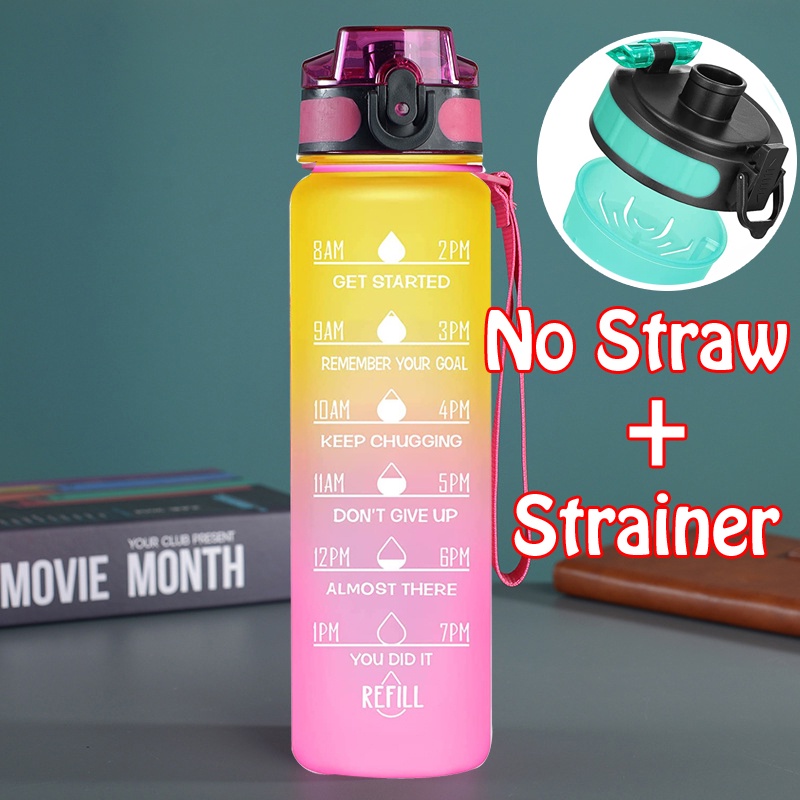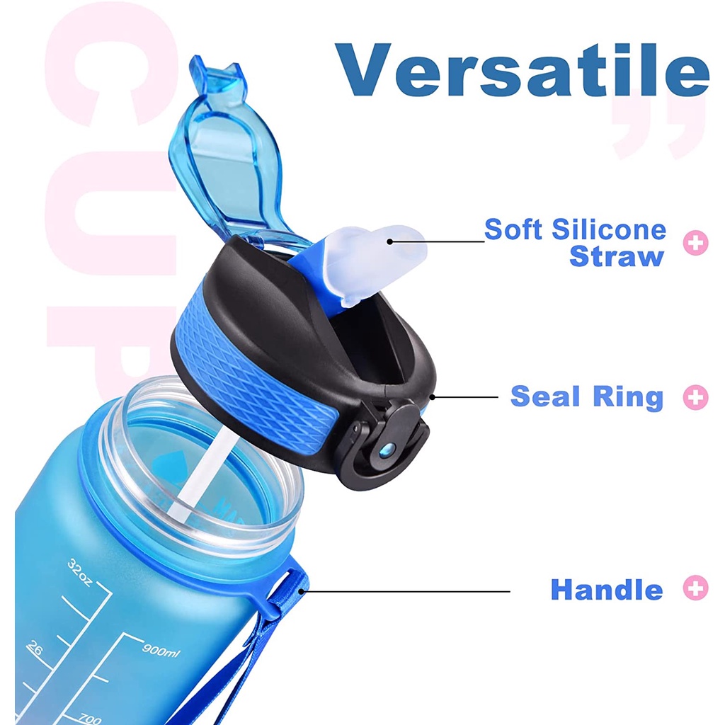 Tumbler 1 Liter with Straw, 1L Jumbo Pastel Sports Tumbler With Time Marker-BPA Free,1000ml Beach Water Bottle Sports Tumbler Frosted Sports Fitness Cup