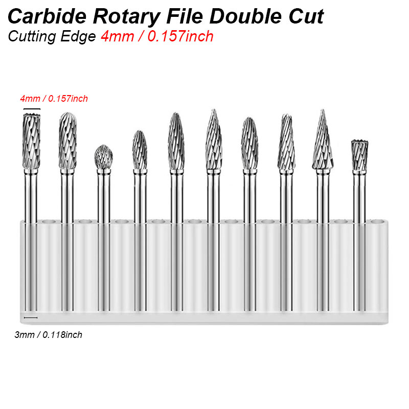 Tungsten Carbide Burr Set - Rotary Milling Cutter File Rasp for Metal, Wood, Plastic, and Stone with 3mm Shank